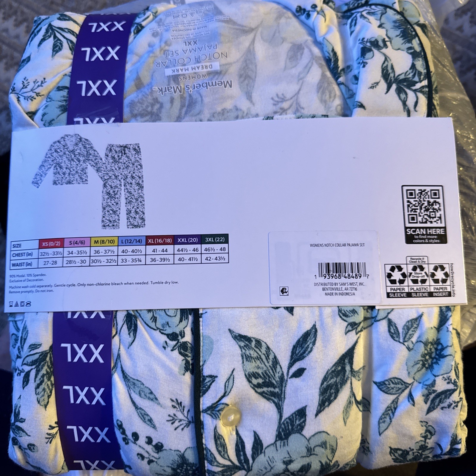 Member's Mark Women's Notch Pajama Set Green Sz XXL Notch Collar Dream Mark NEW