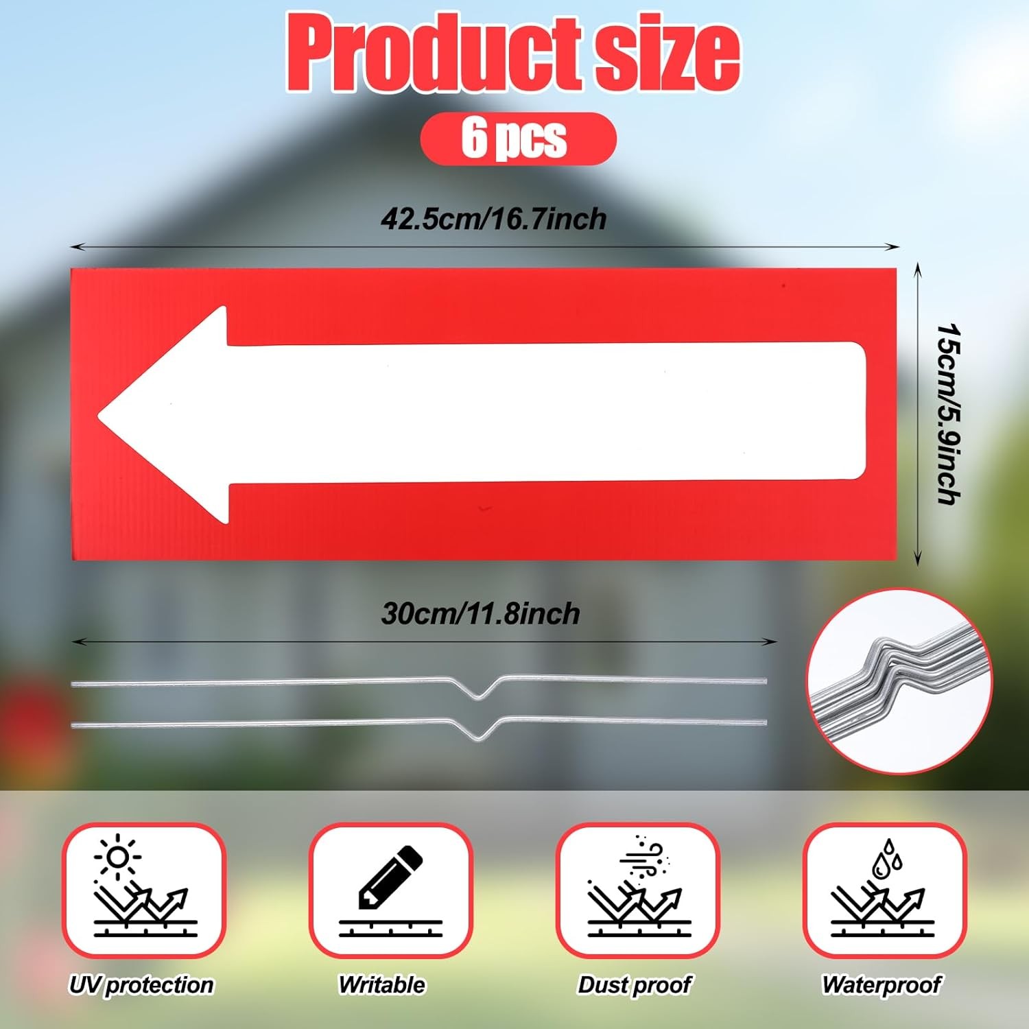 6 Pcs Arrow Yard Signs 17 x 6 Inch Double Sided Directional This Way Sign W/ 13