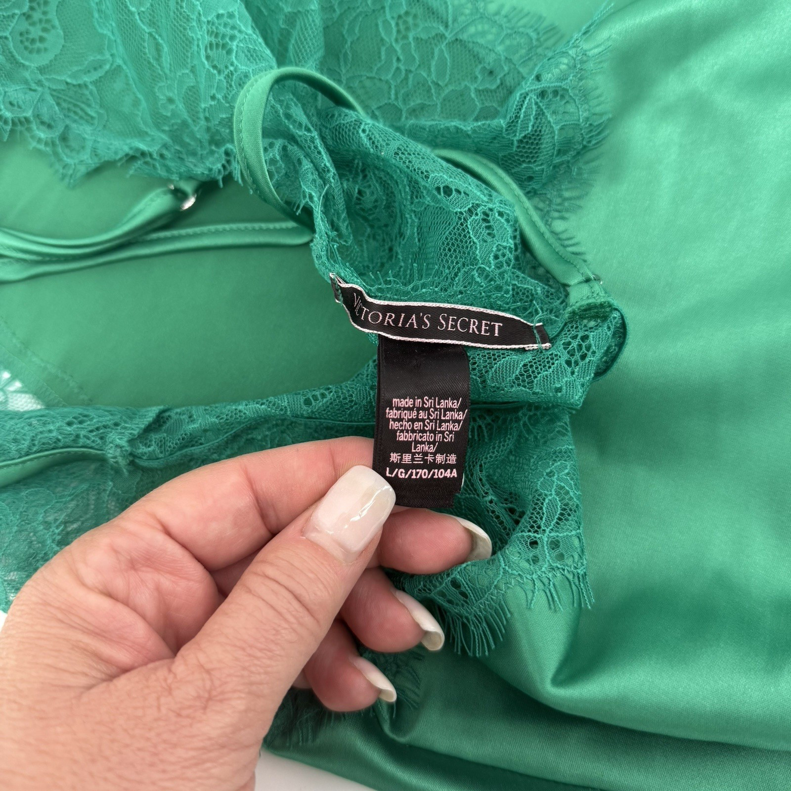 как выглядит Victoria s Secret Women s Large Emerald Green Satin Lace Babydoll Slip фото