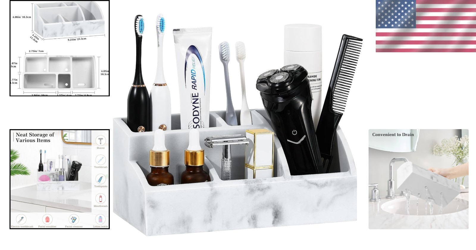 как выглядит Bathroom Counter Organizer 5 Slot Toothbrush Holder Marble Resin Gravel White фото