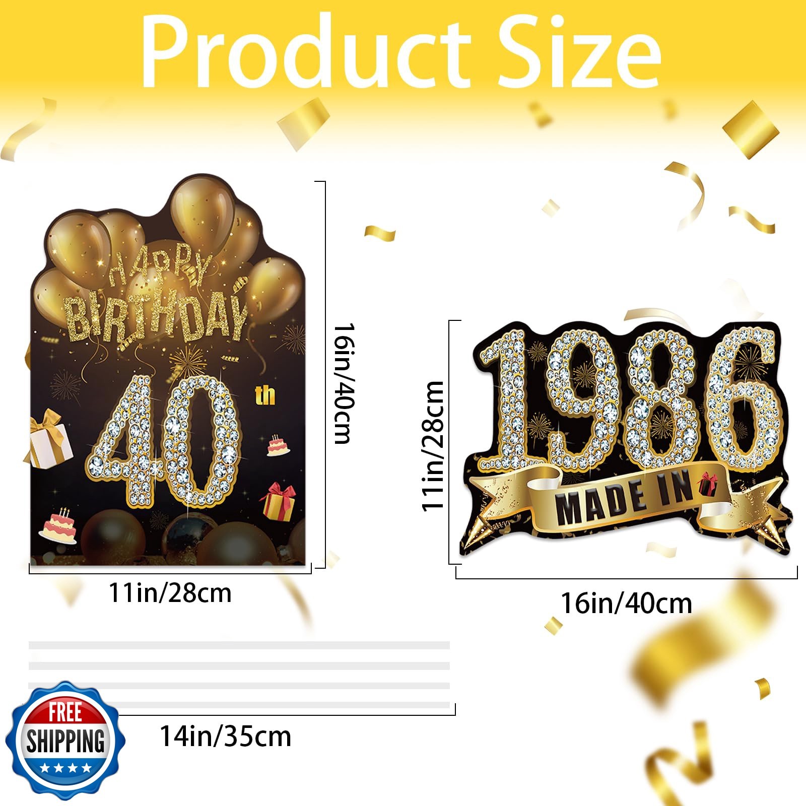2Pcs Birthday Yard Signs 40th Birthday Decorations for Men Women Black Gold H...
