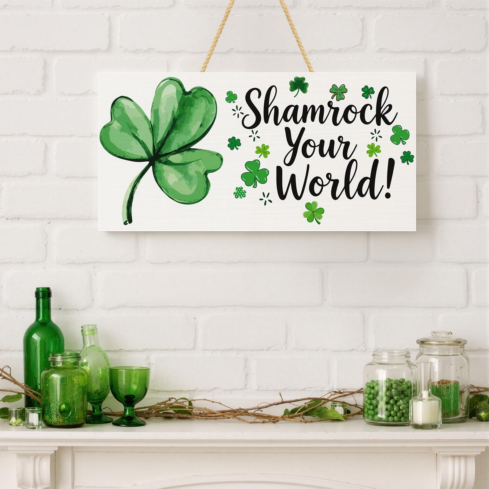 St Patricks Day Decorations - Hanging Wooden Sign for Wall Home Door Birthday