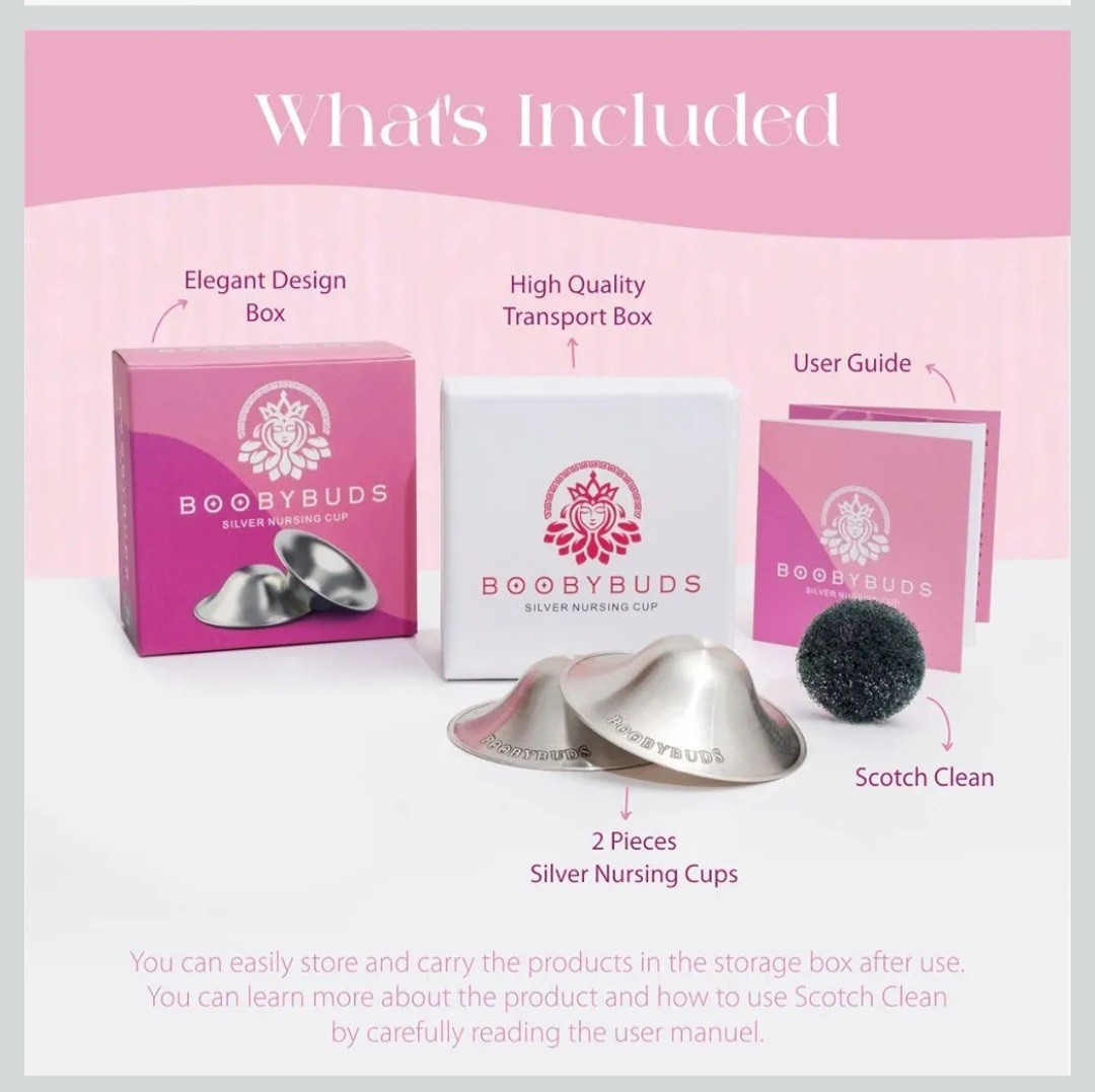 Boobybuds - Silver Nursing Cups, 999 Silver - Nipple Shields after Breastfeeding