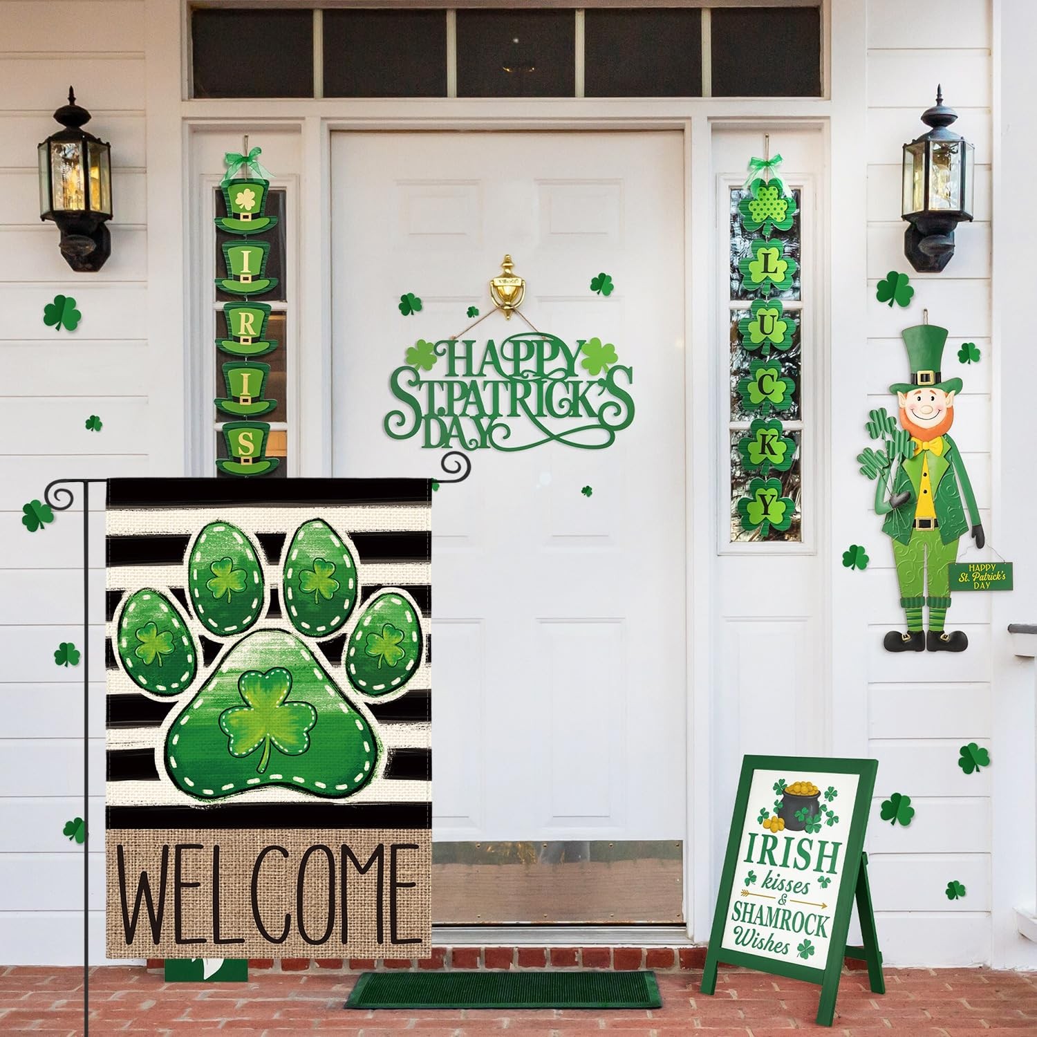 • Paw Print St Patricks Day Garden Flag 12x18 Inch Double Sided Outside, Shamrock