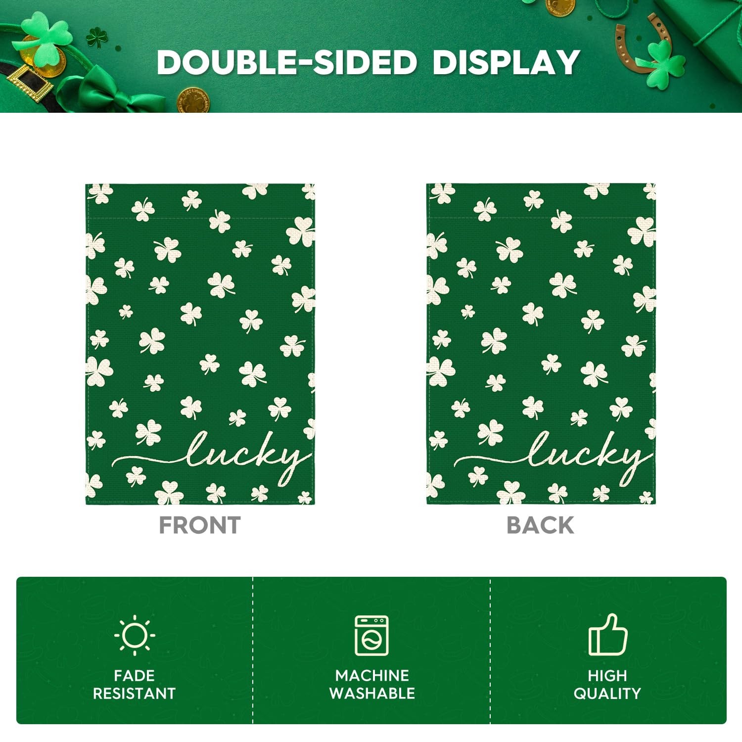 как выглядит St Patricks Day Lucky Garden Flag 12x18 Inch Double Sided Outside, Floral Small фото