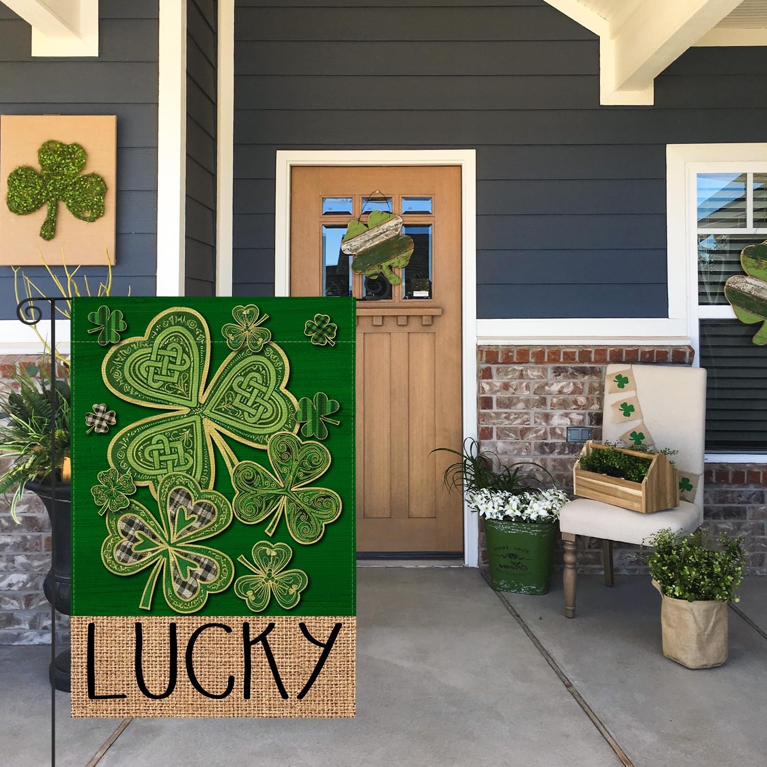 St Patricks Day Garden Flag 12x18 Inch Double Sided Outside, Lucky Shamrock Clov