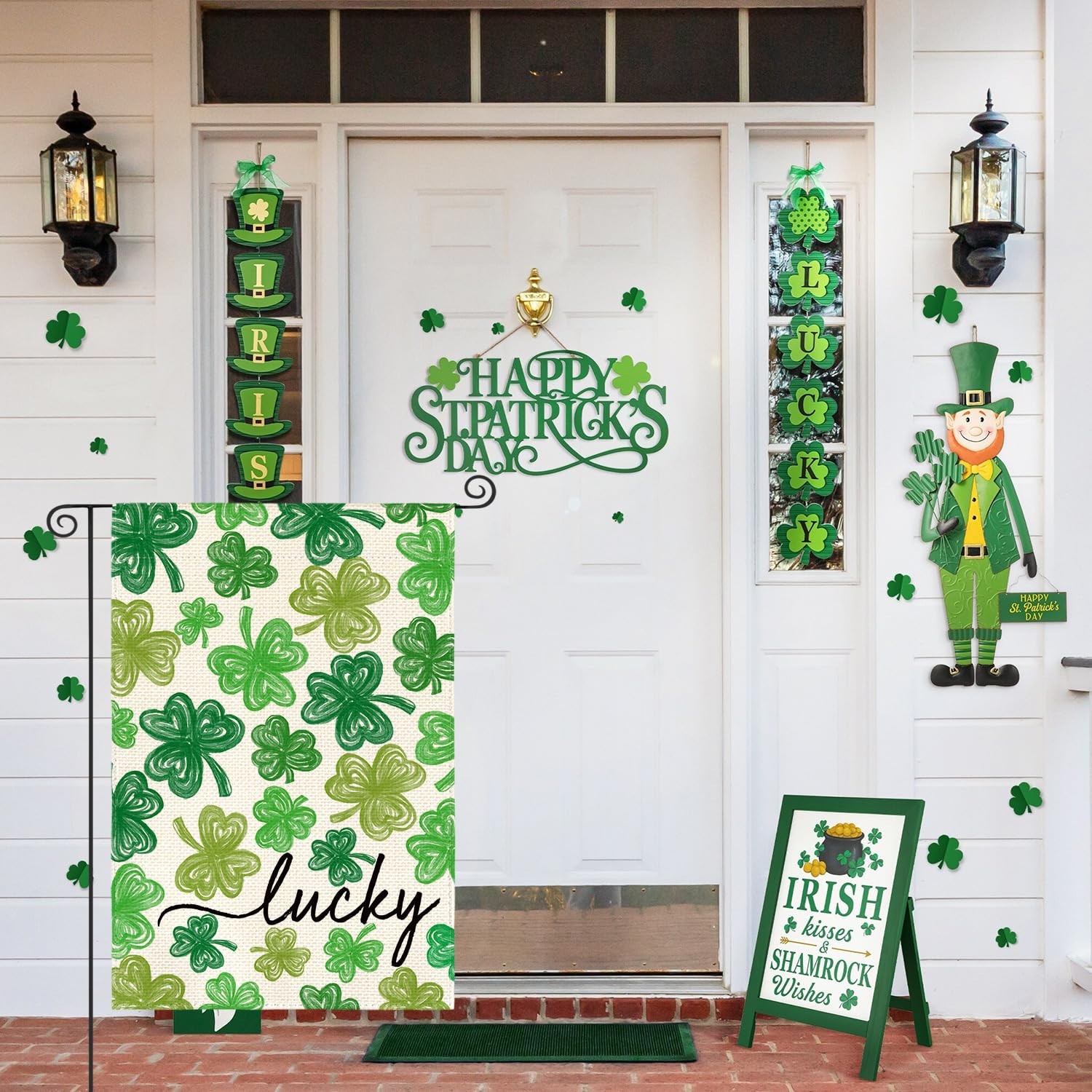 • St Patricks Day Garden Flag 12x18 Inch Double Sided Outside, Shamrock Lucky Clov