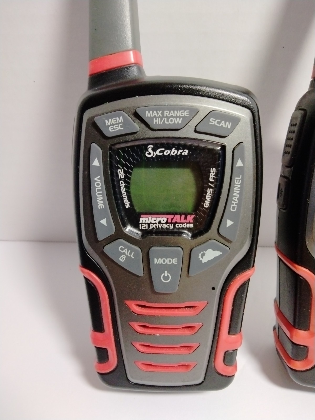 Cobra MicroTalk CXT595 2 Way Radio Walkie Talkie Set Charger 22 Channel Use AA