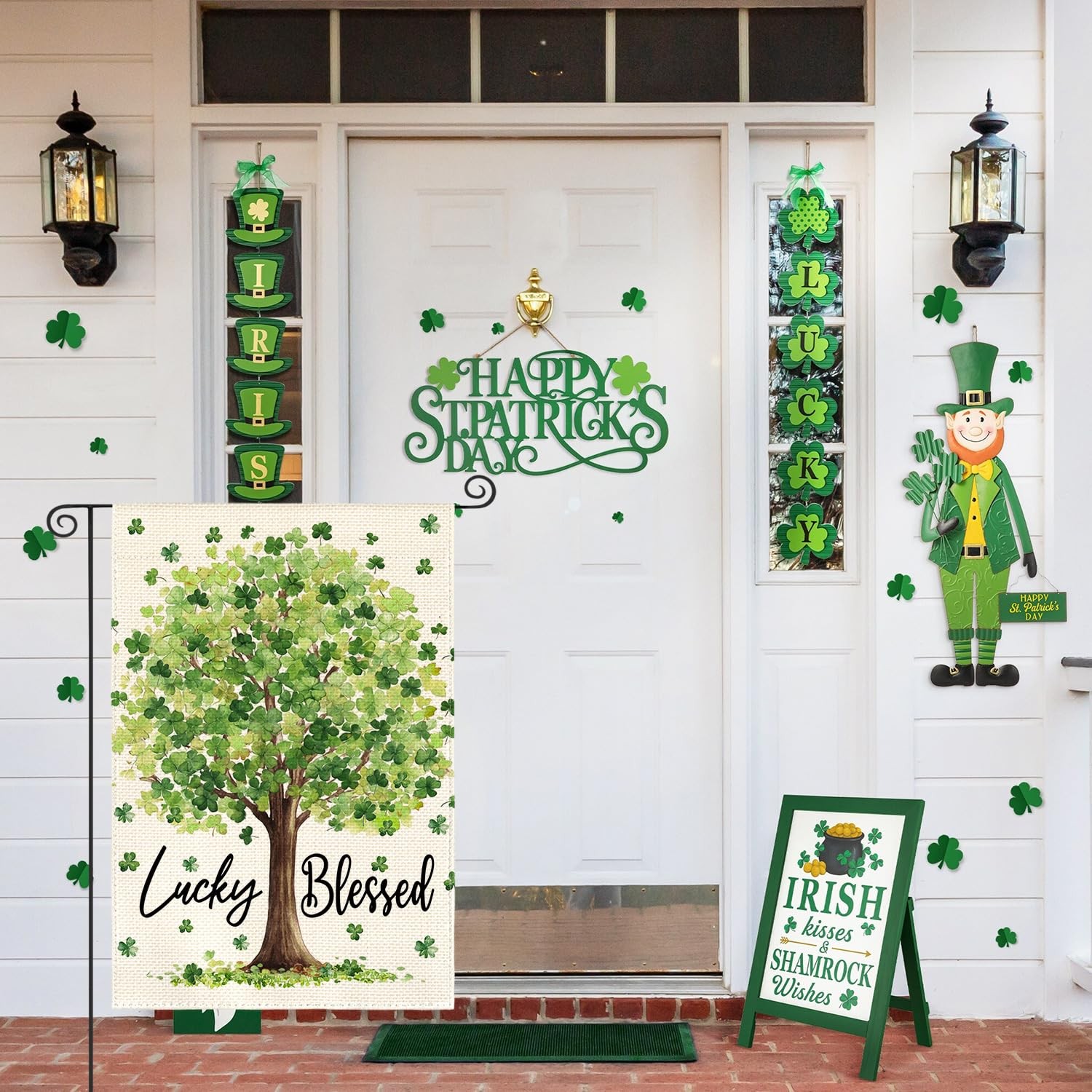 • St Patricks Day Garden Flag 12x18 Inch Double Sided Outside, Lucky Blessed Sham