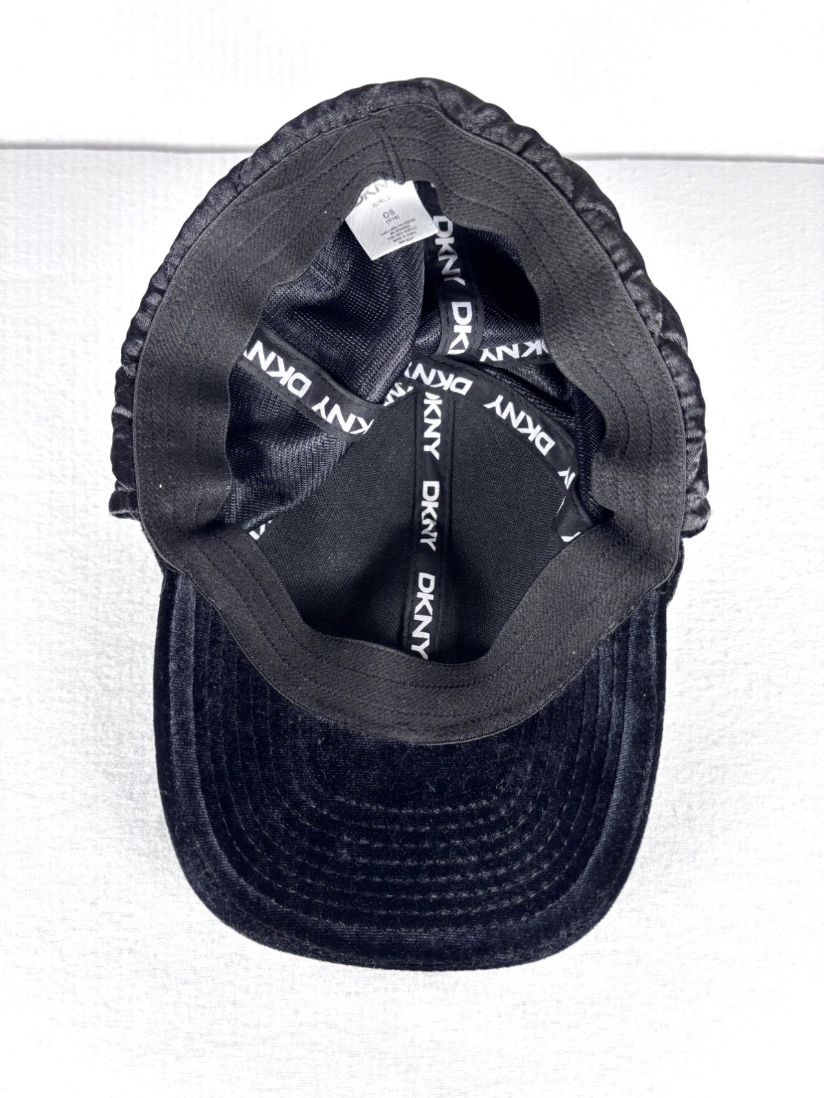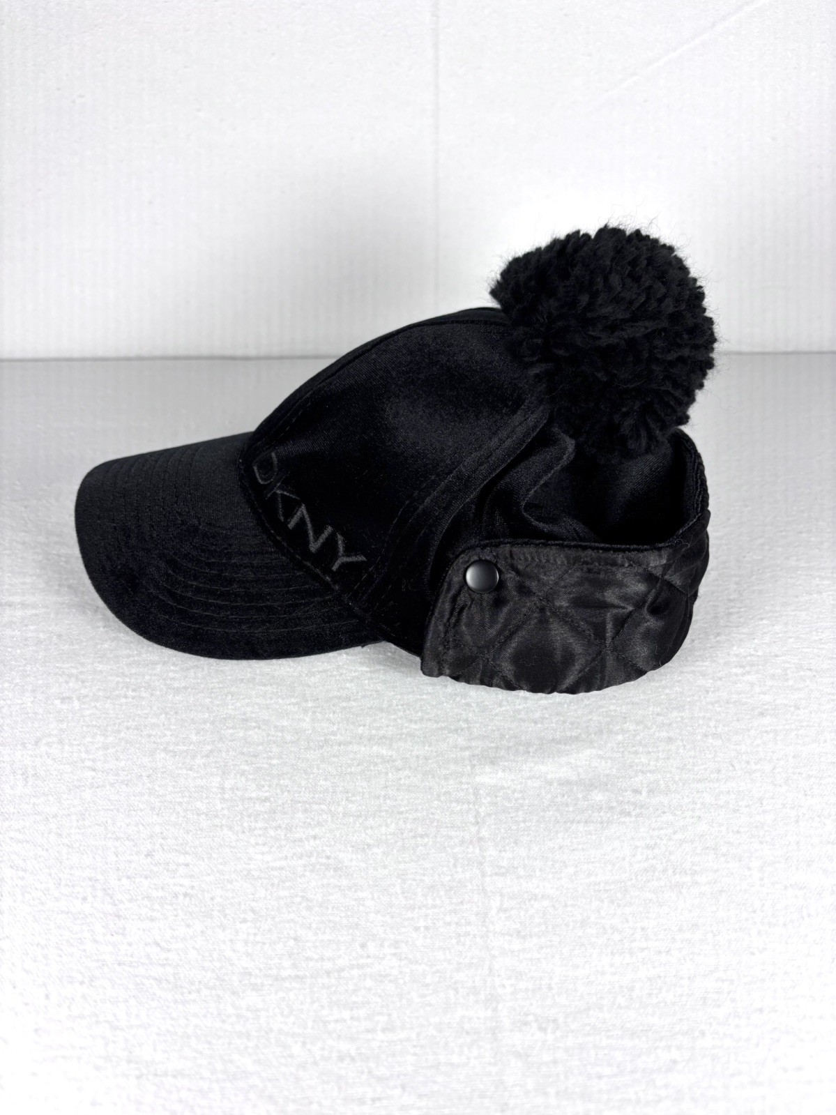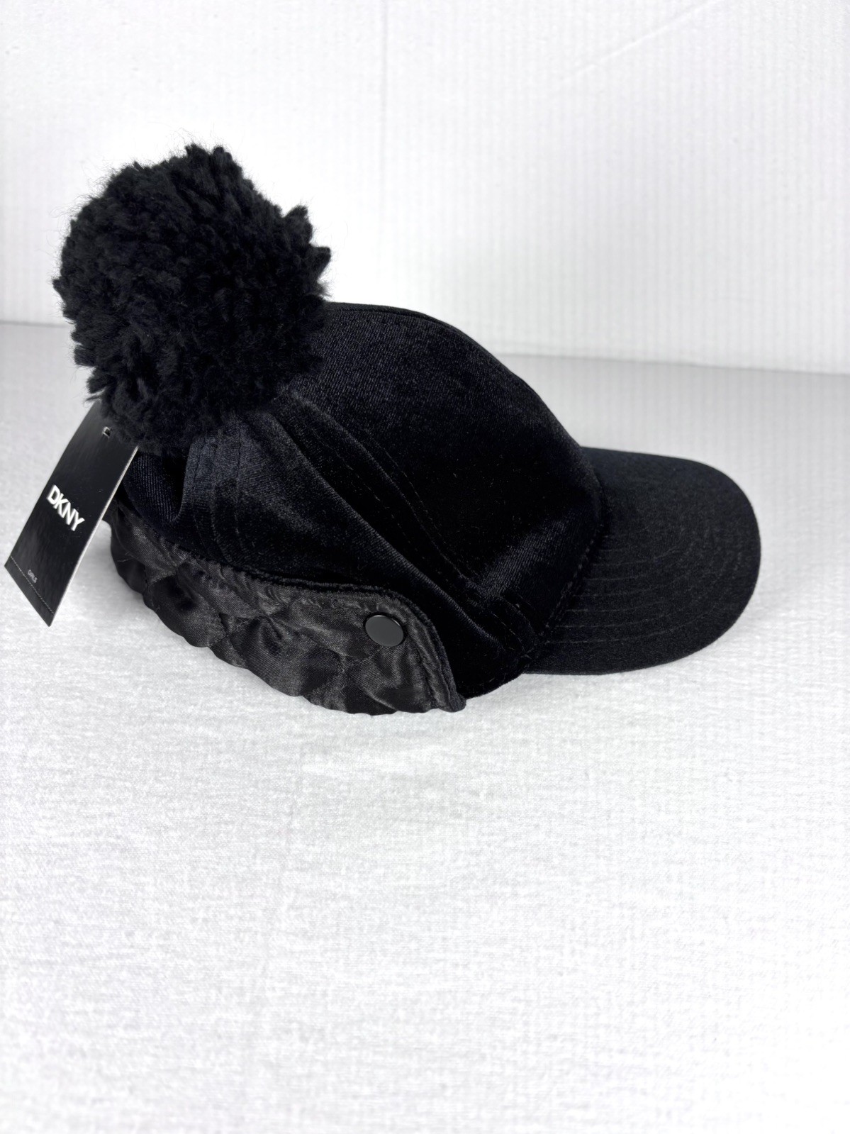 DKNY Girls OS Black Skimmer Velvet Winter Hat with Pom Pom