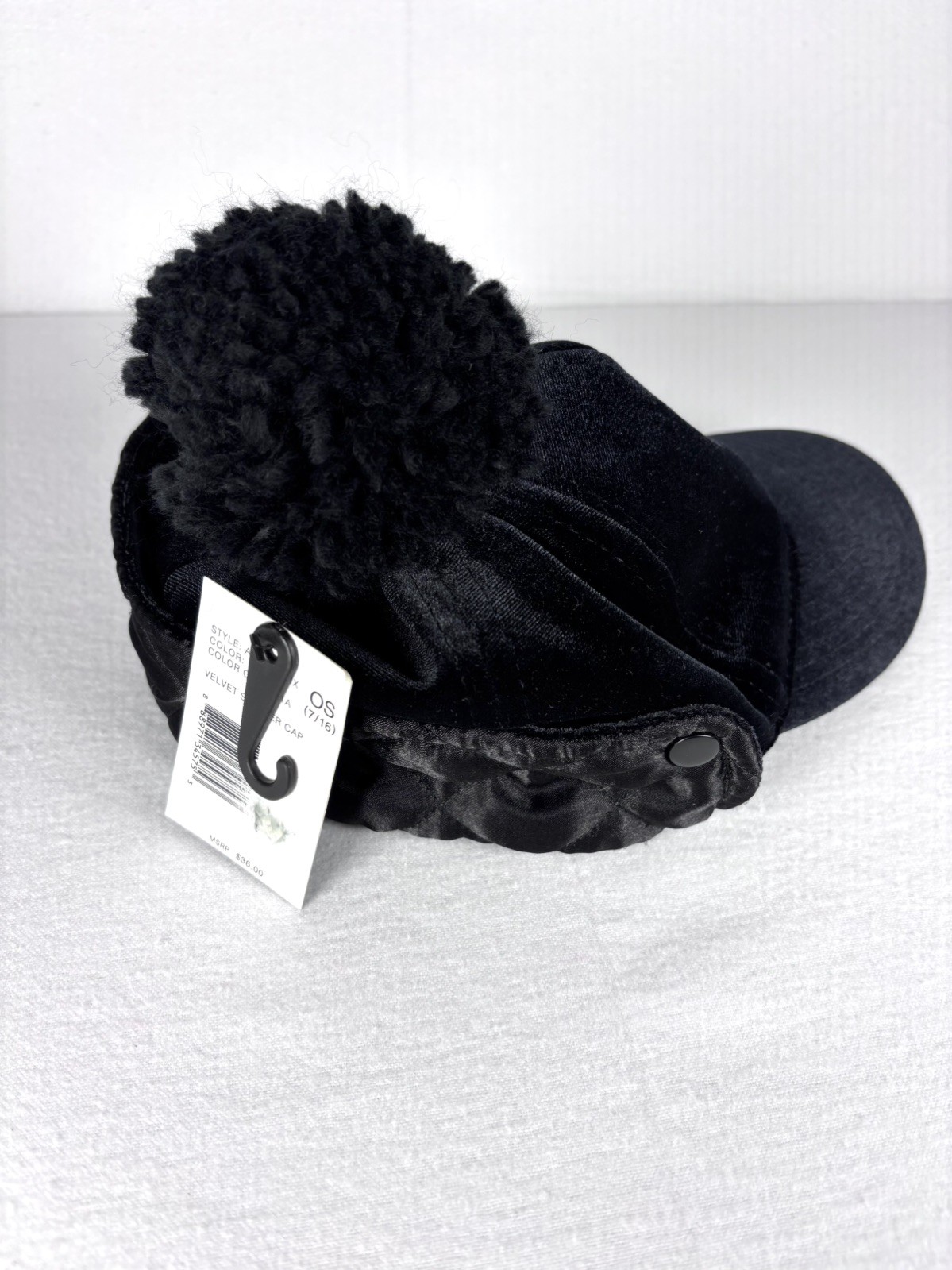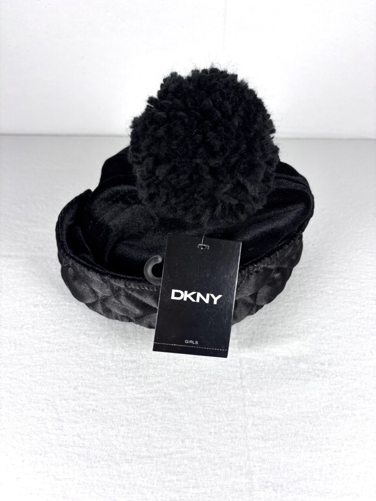 как выглядит DKNY Girls OS Black Skimmer Velvet Winter Hat with Pom Pom фото