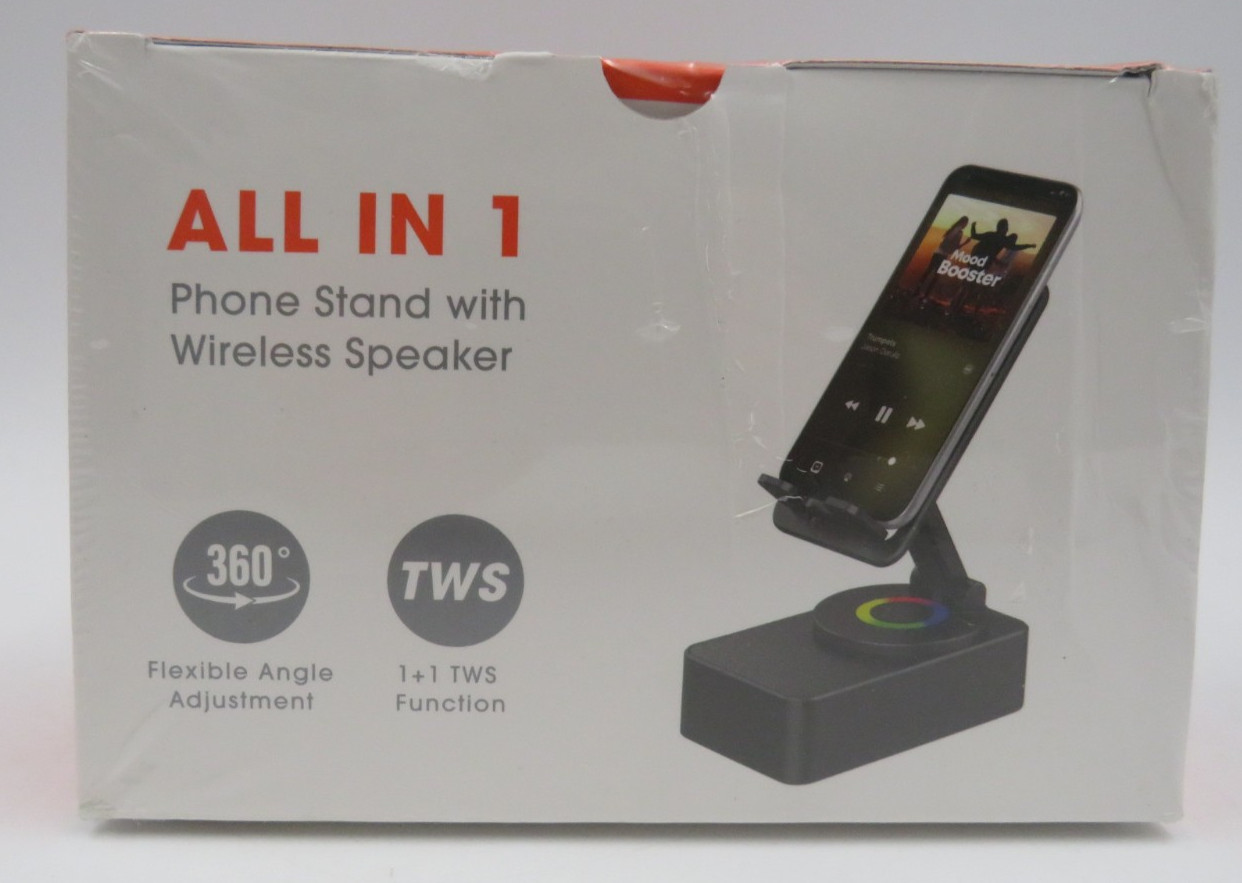 Cell Phone Stand with Wireless Bluetooth Speaker LED Anti-Slip Base NEW SEALED