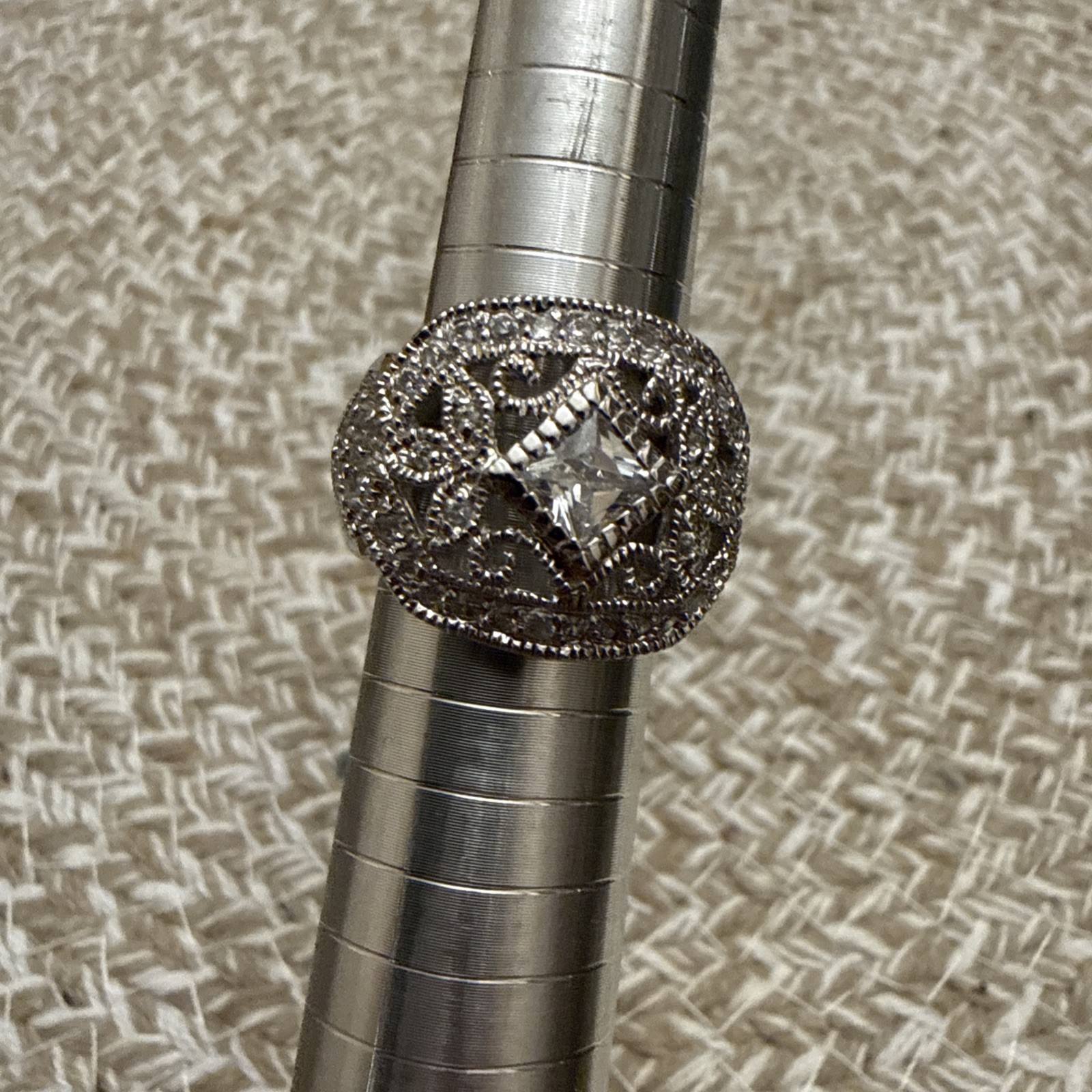 Vintage ATI Sterling Silver White Crystal Wedding Wide band Ring size 8