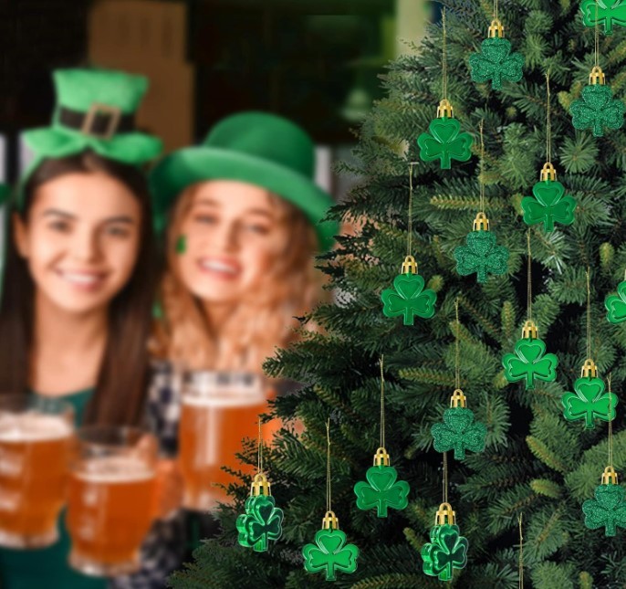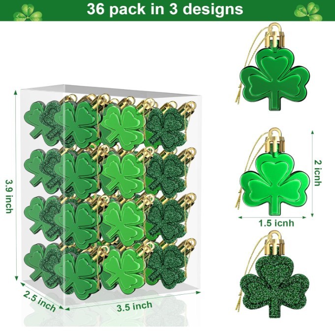 36 Pcs St. Patrick's Day Shamrock Ornaments - Green Clover Decorations