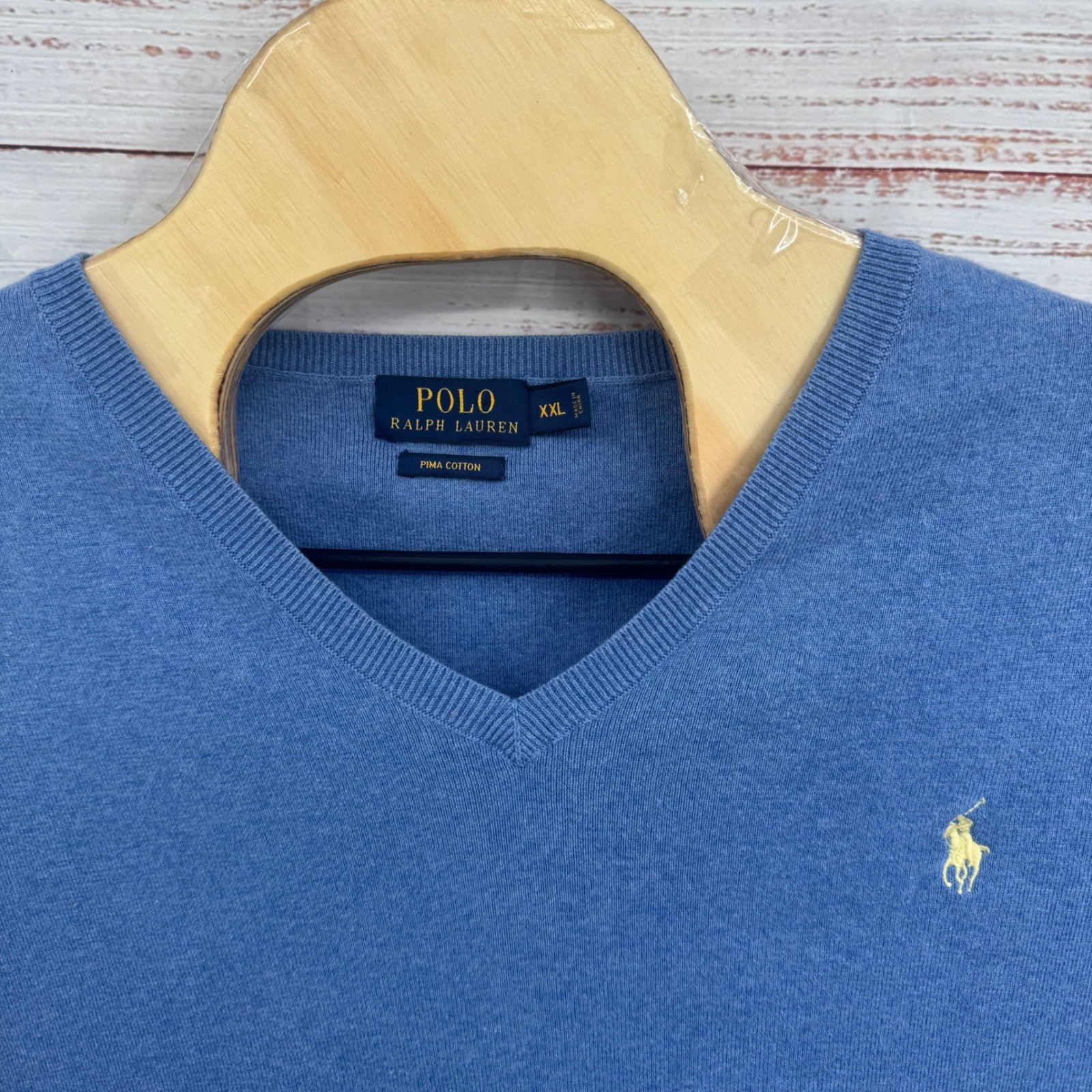 как выглядит Polo Ralph Lauren V-Neck Sweater Vest Lightweight Mens 2XL Blue Pima Cotton фото