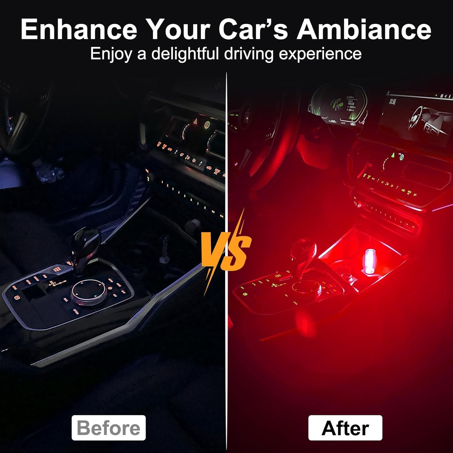 LYCARESUN 2 PCS Car USB Night Light Bulb, Touch Dimmable Car Interior Ambient Li
