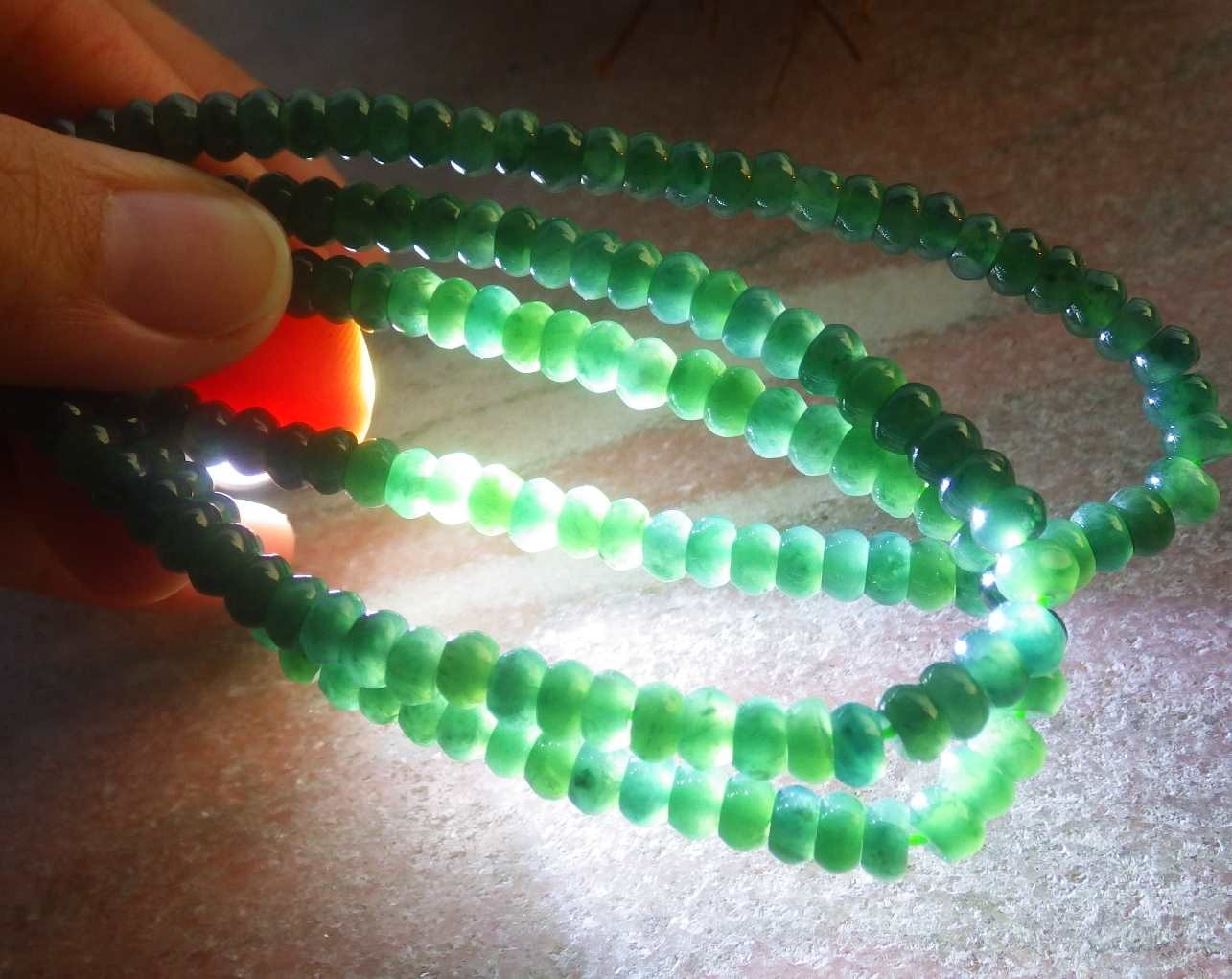 Certified Green 100 A JADE Jadeite Beads Circle Necklace 24 inches 719152 AS