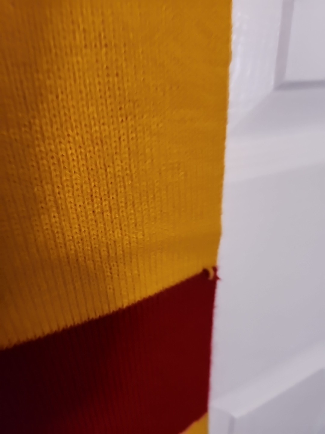 как выглядит Harry Potter Gryffindor Striped Red Yellow Knit Neck Scarf With Fringe фото