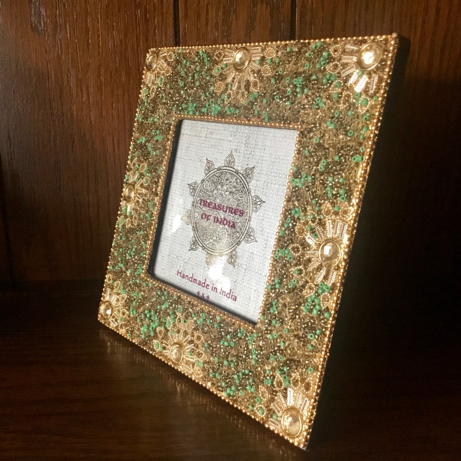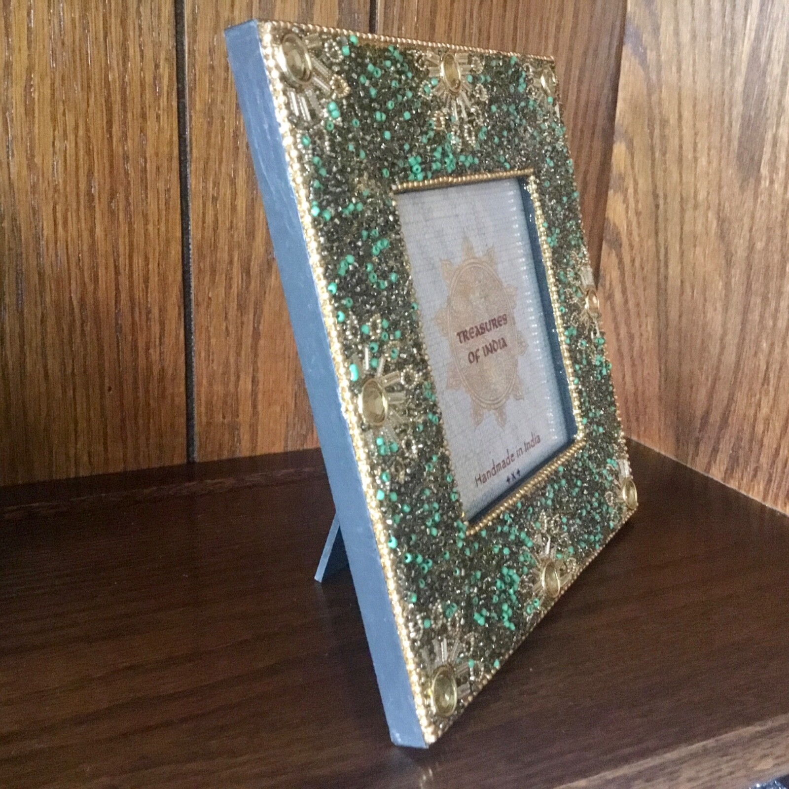 • Picture Frame Freestanding 4x4 Photo Treasures of India Beaded Handcrafted B9