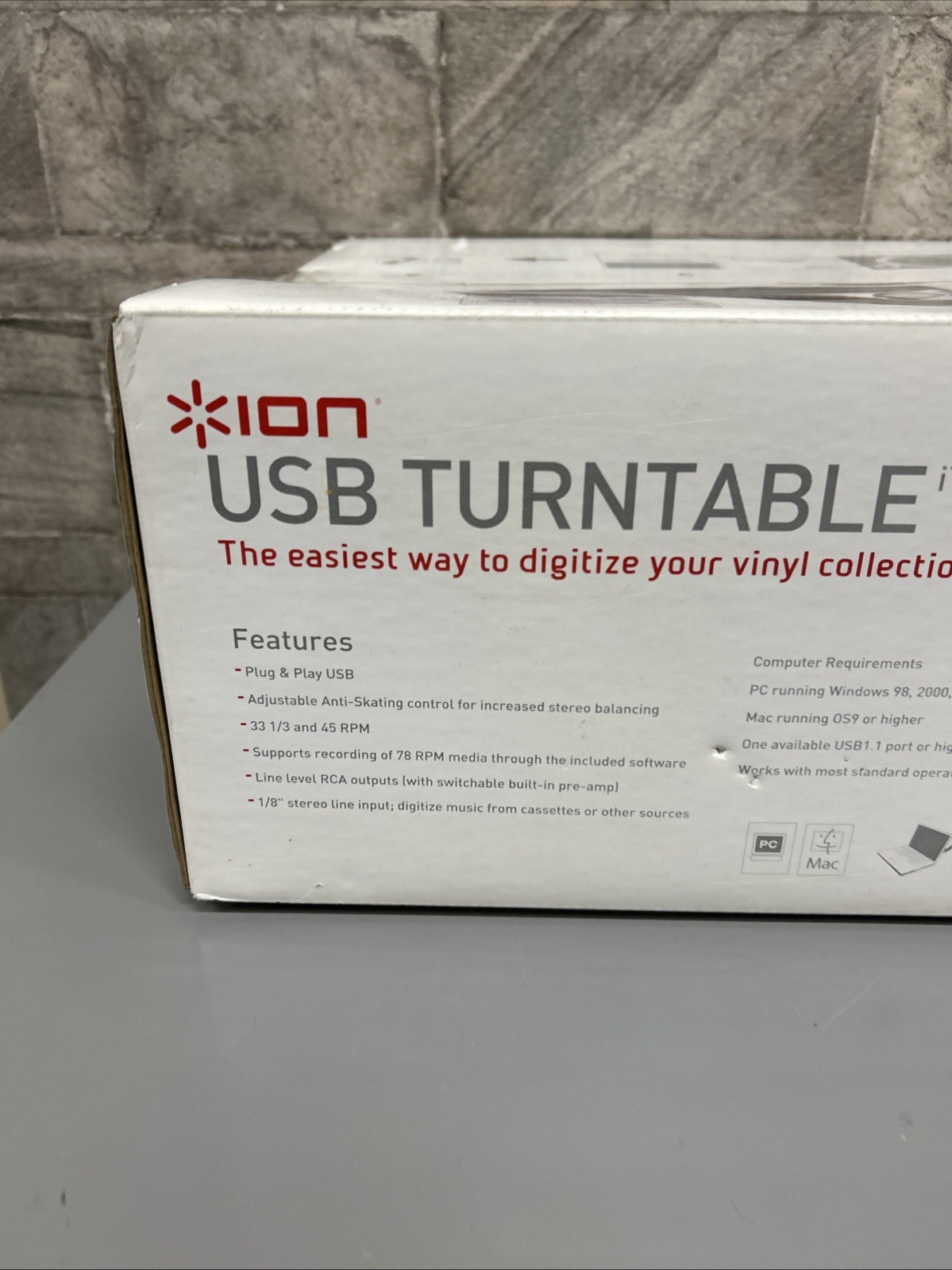 ION USB Turntable iTTUSB Digitize Vinyl Record Album LP 45 33 1/3 RPM Sealed New