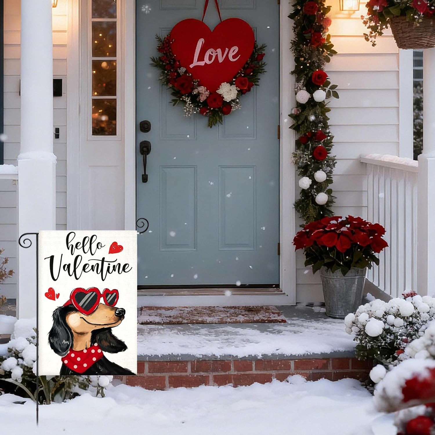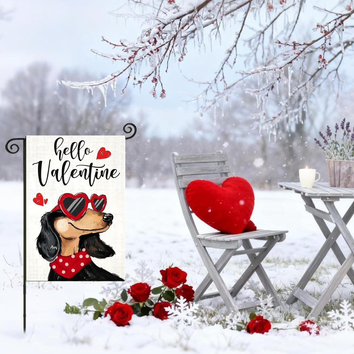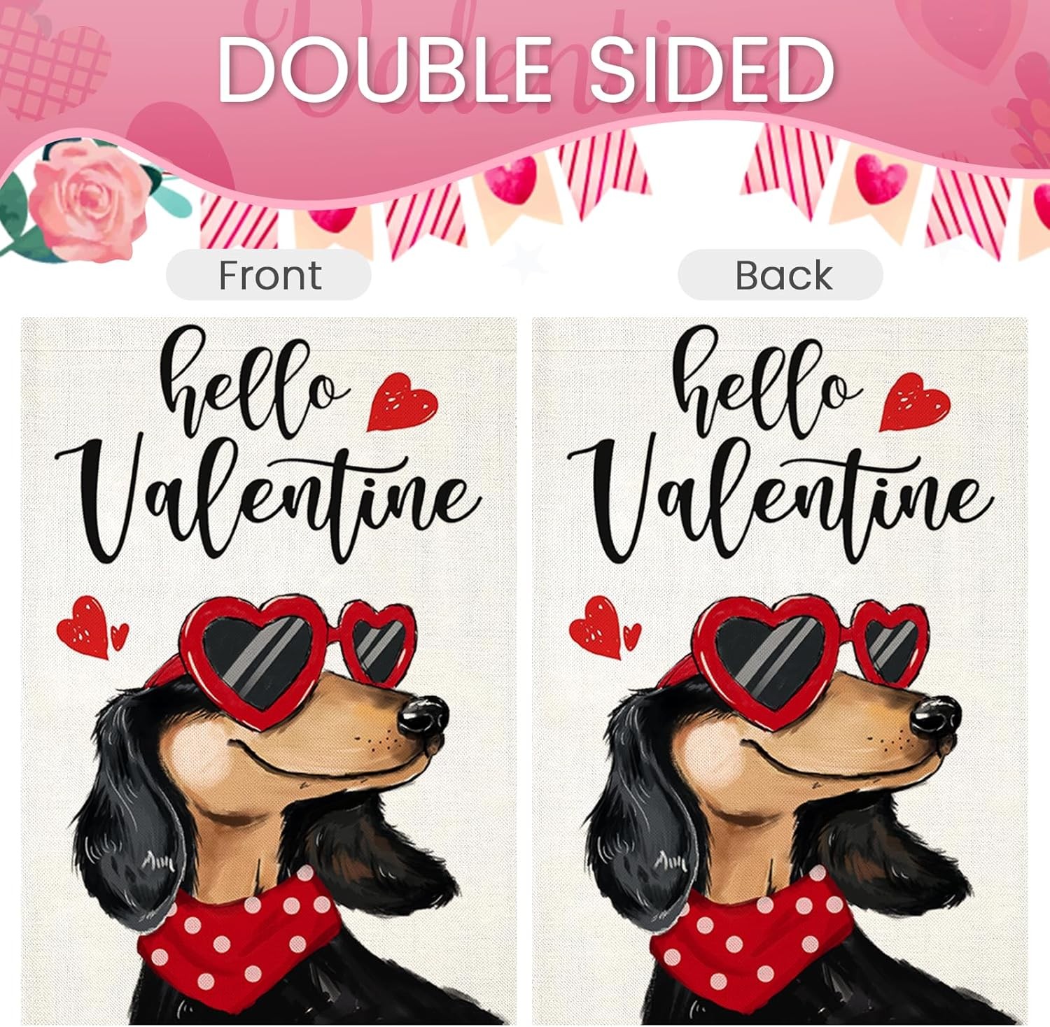 как выглядит Hello Valentines Garden Flags 12x18 Inch Double Sided, Dachshund Dog with Love S фото