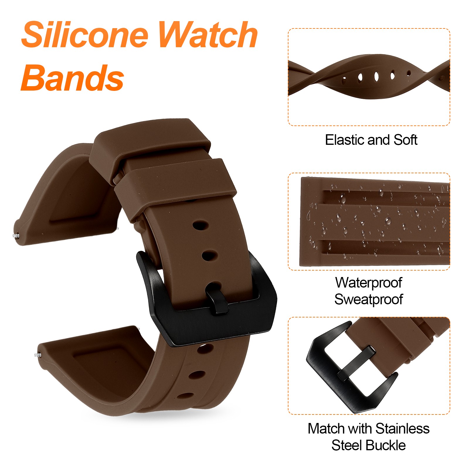 Silicone Watch Bands 26mm Soft Watch Band with Black Buckle, Brown