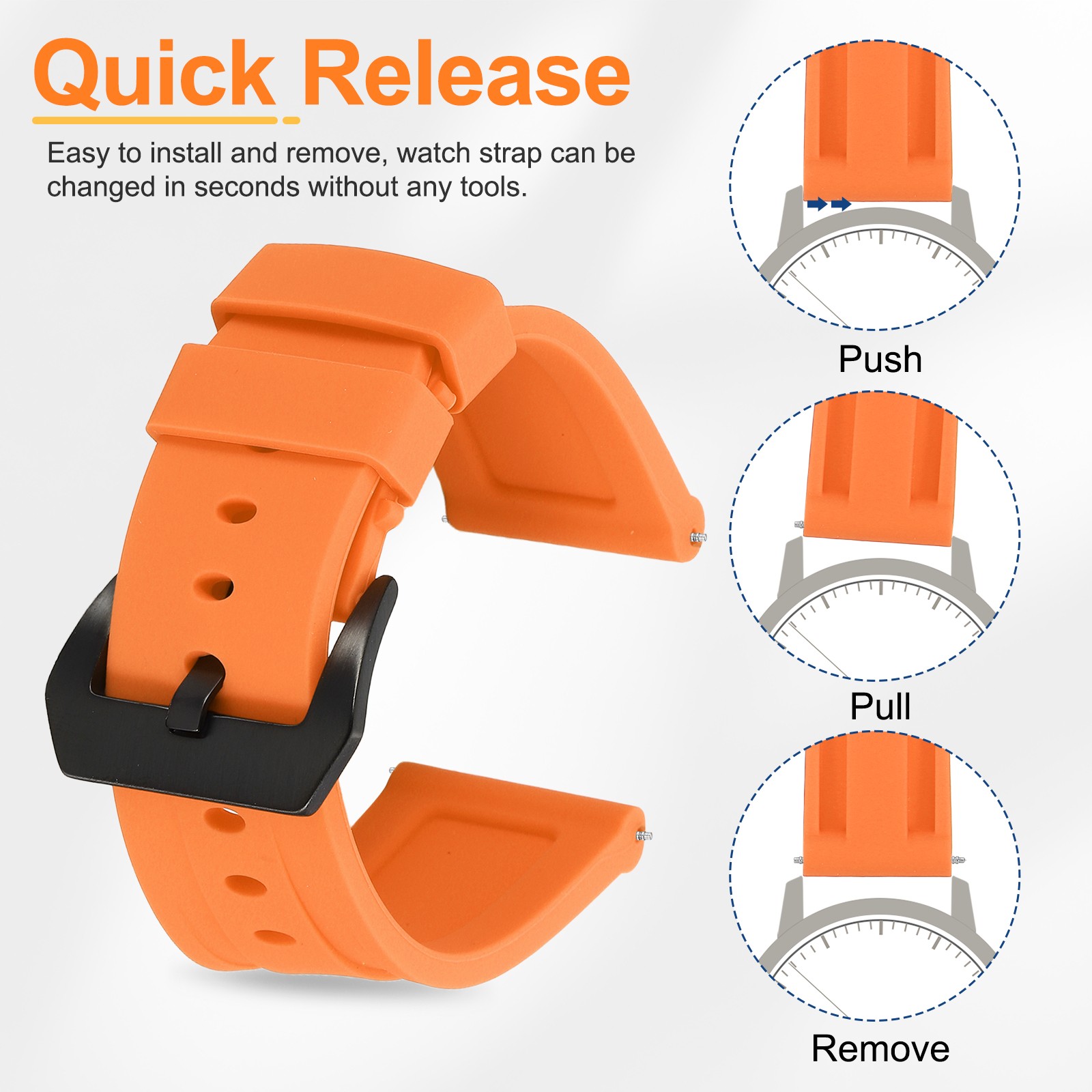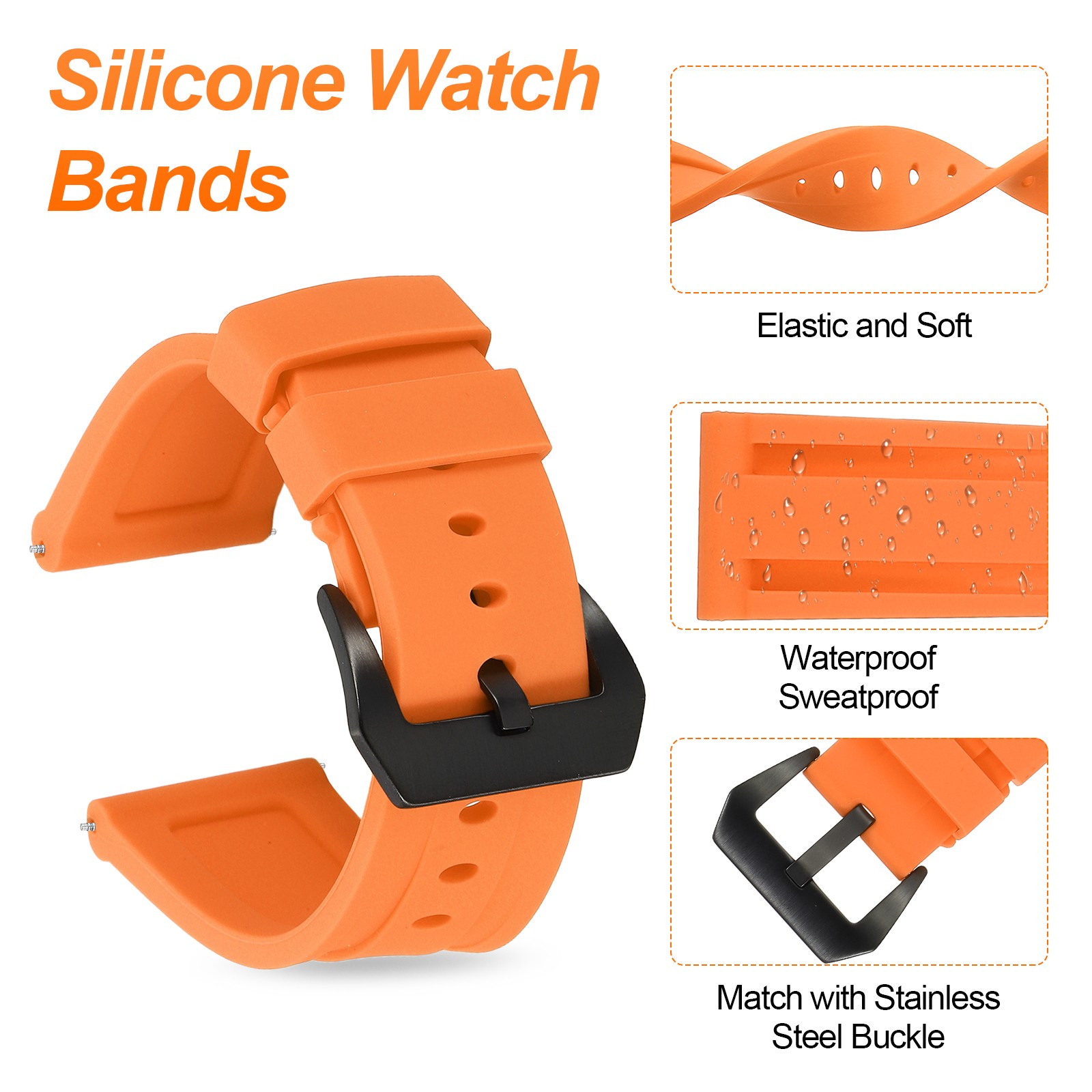 Silicone Watch Bands 26mm Soft Watch Band with Black Buckle, Orange