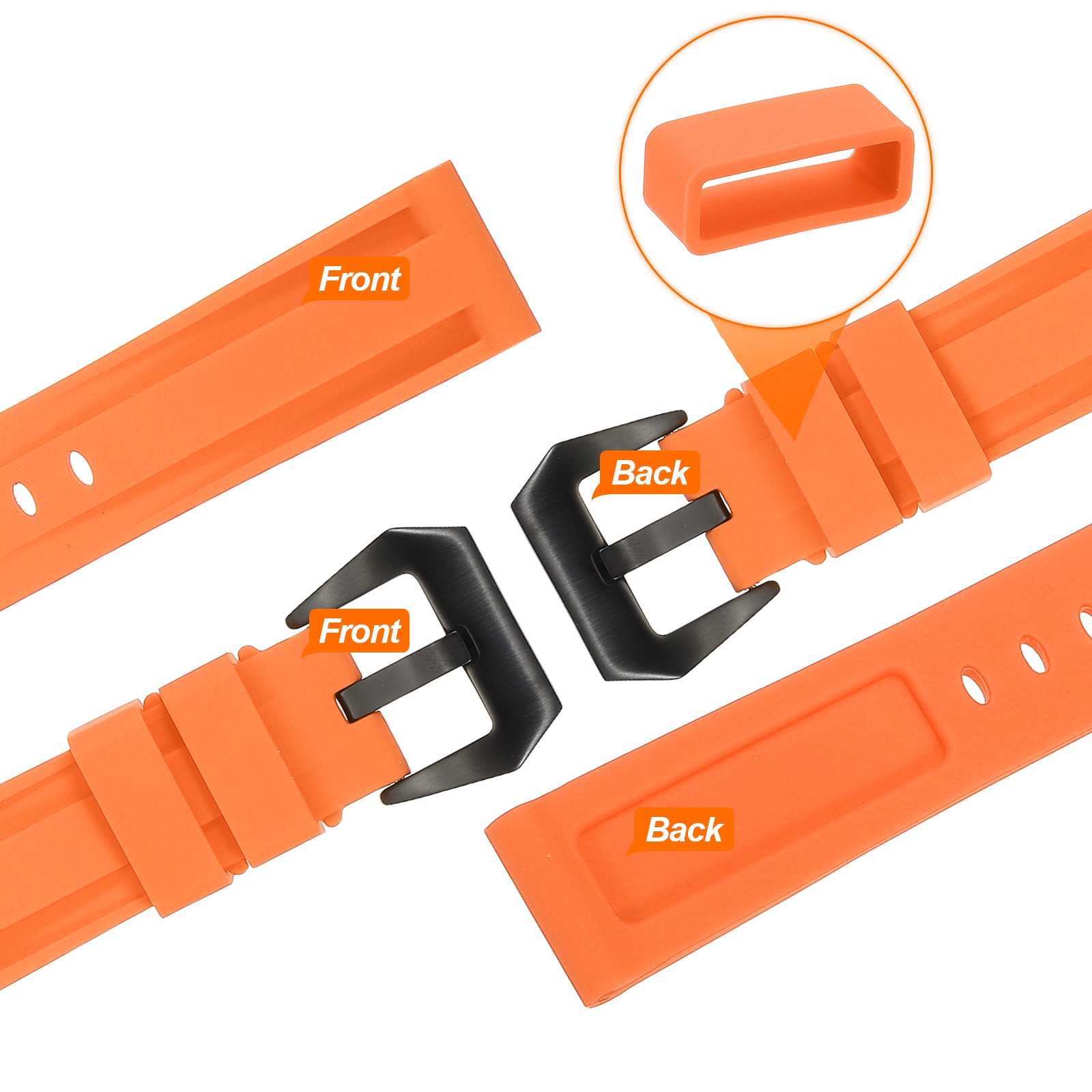 как выглядит Silicone Watch Bands 26mm Soft Watch Band with Black Buckle, Orange фото