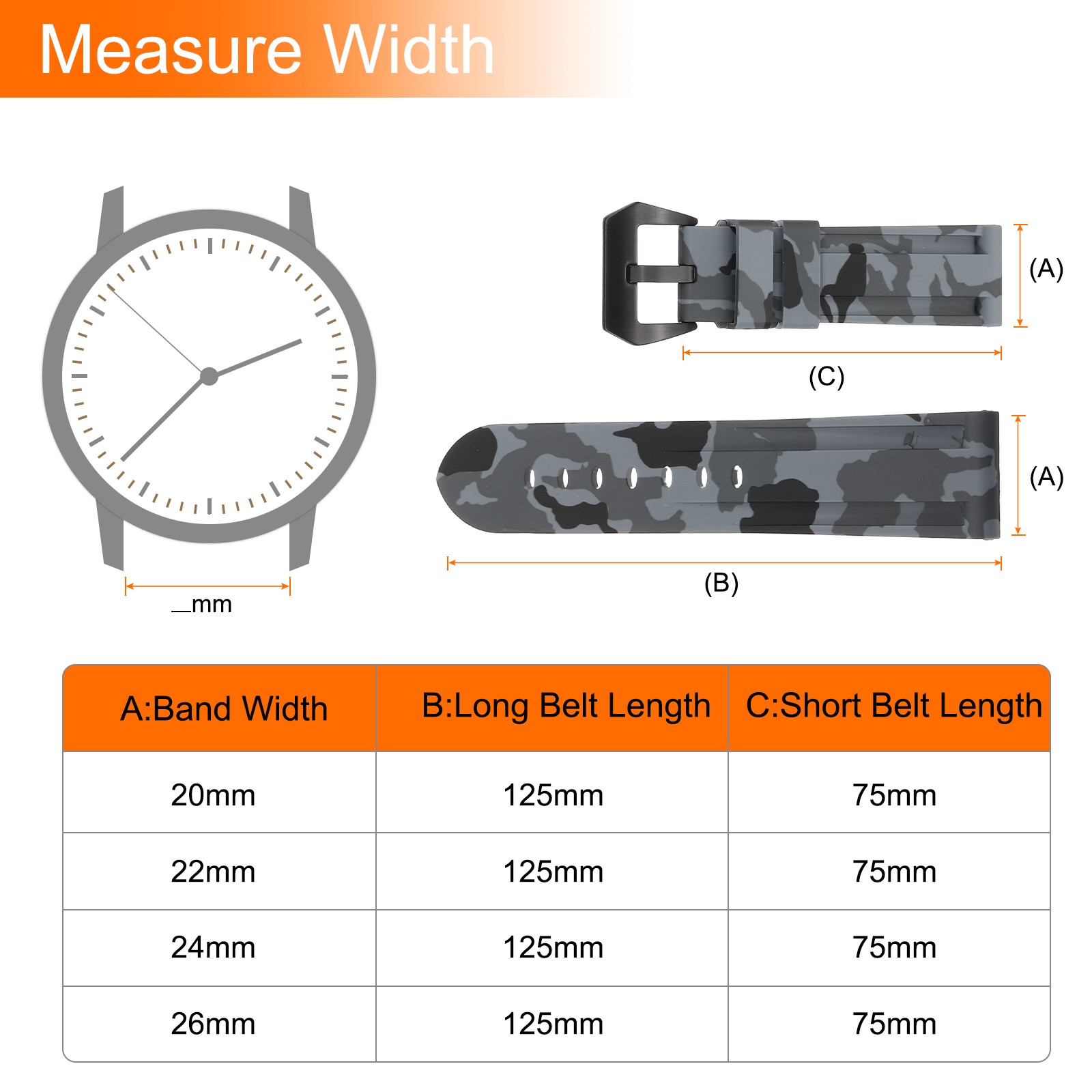 как выглядит Silicone Watch Bands 24mm Soft Watch Band with Black Buckle, Camo Gray фото