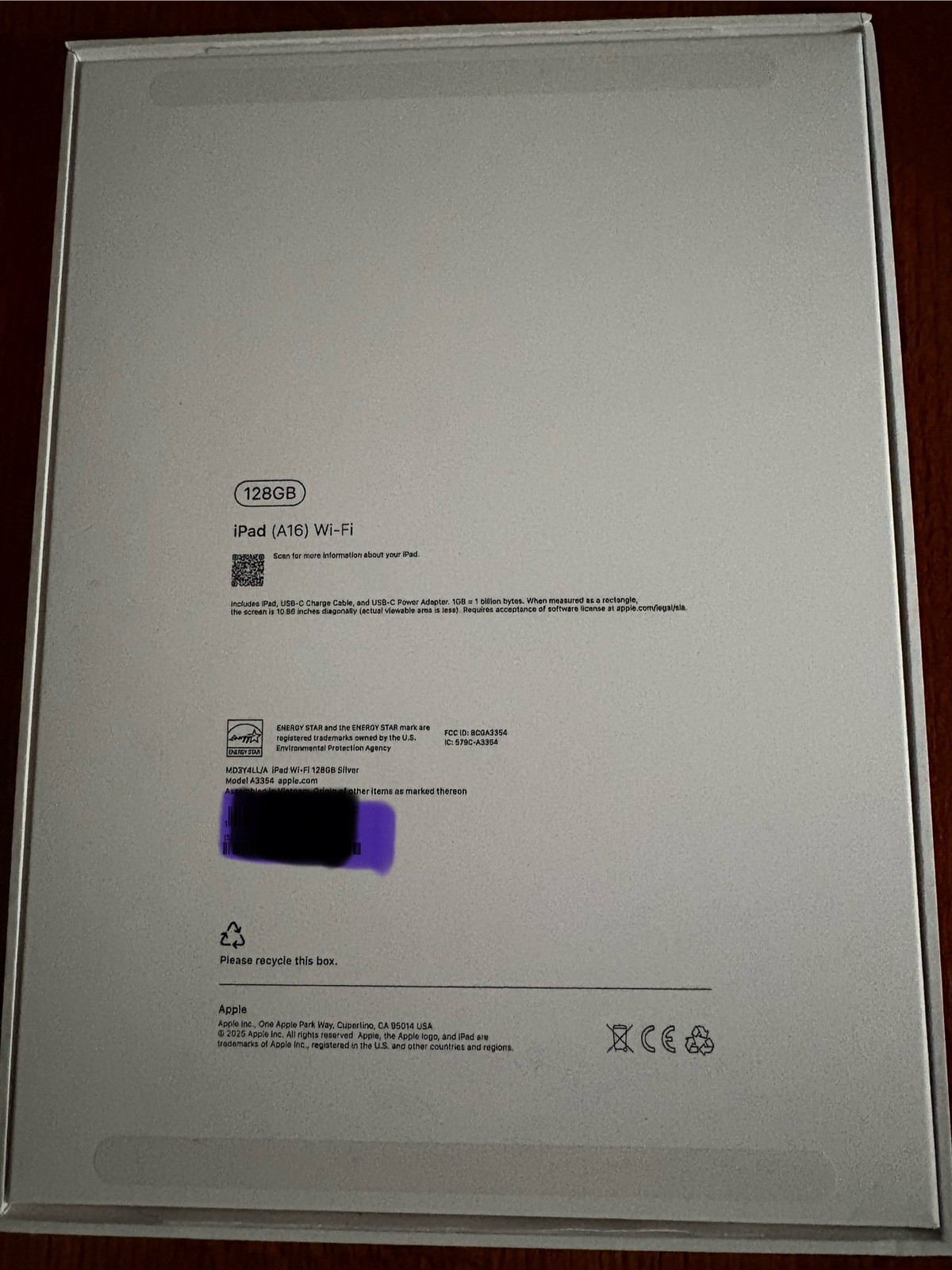 как выглядит iPad 11th generation Silver 128 GB A3354 A16 Wifi 2025 Model Empty Box Only фото