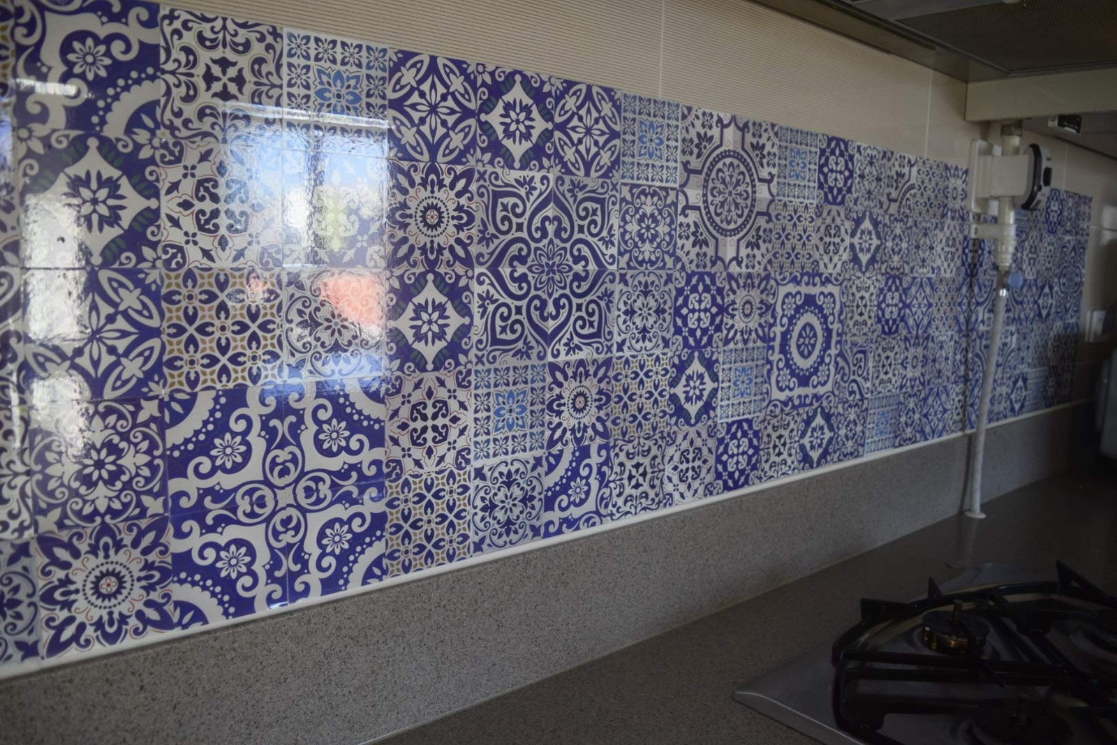 как выглядит 65 units of 13designs Blue Peel and Stick Tile Sticker DIY Decor for Backspla... фото