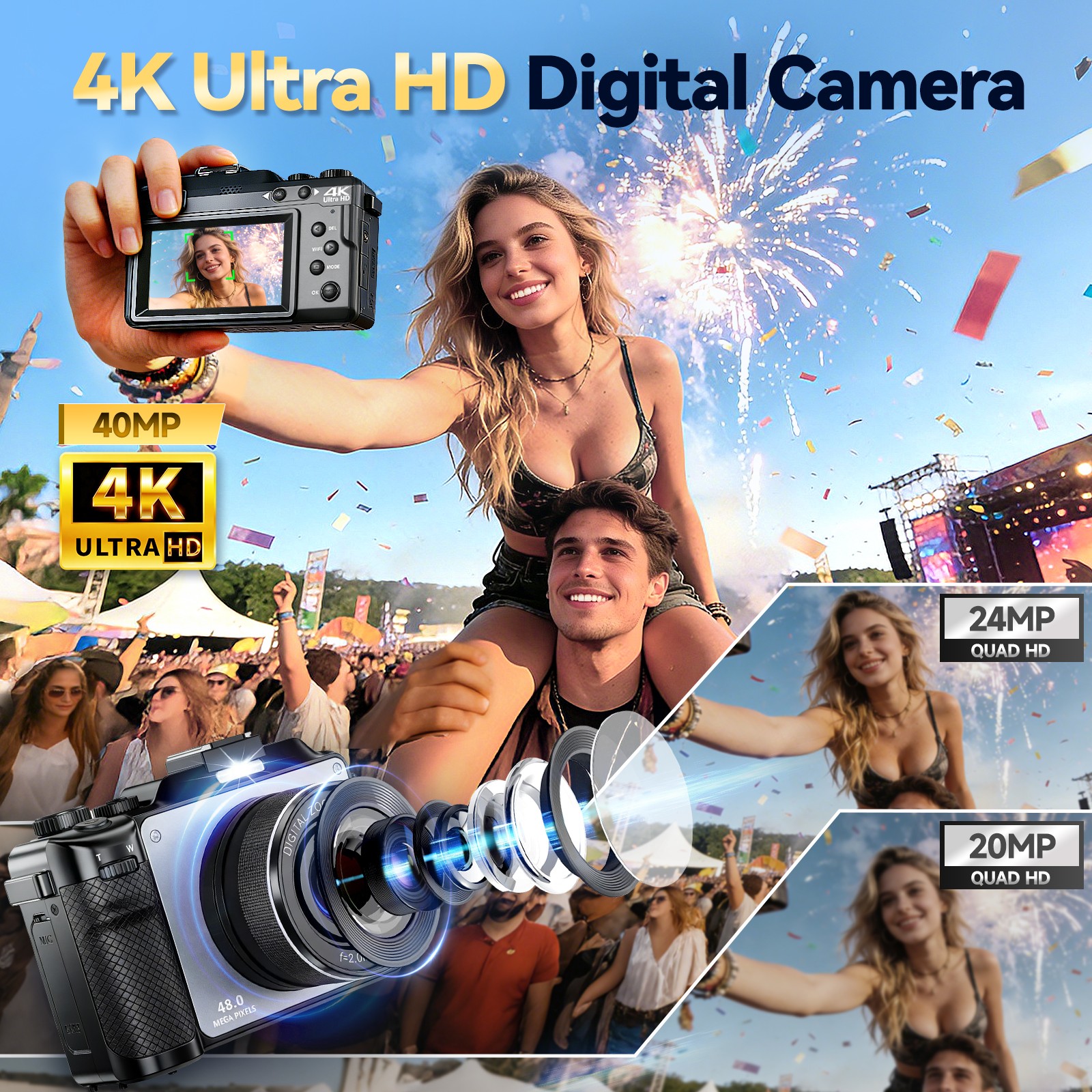 4K Digital Camera for Photography and Video Autofocus Anti-Shake 48MP Vlogging