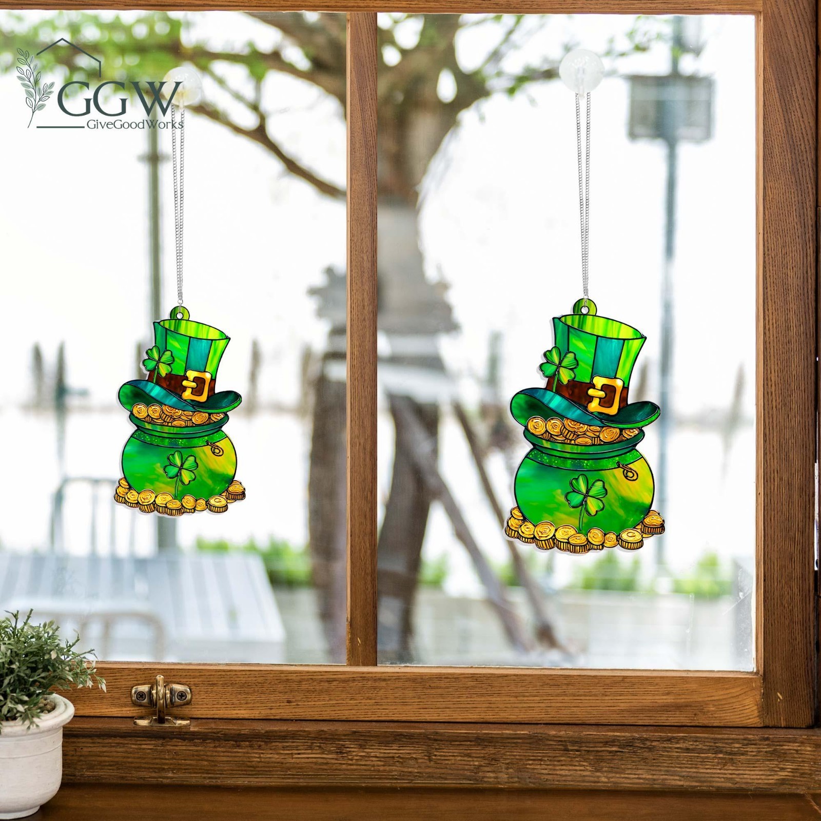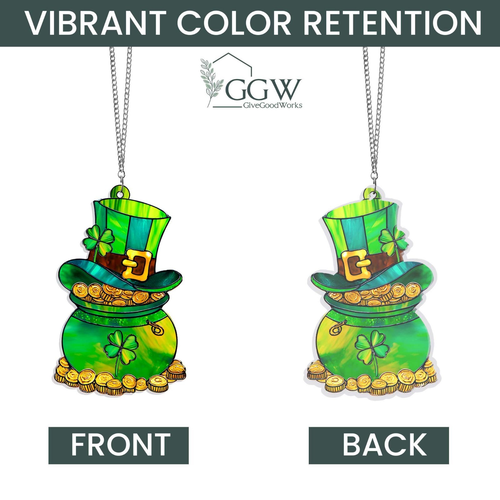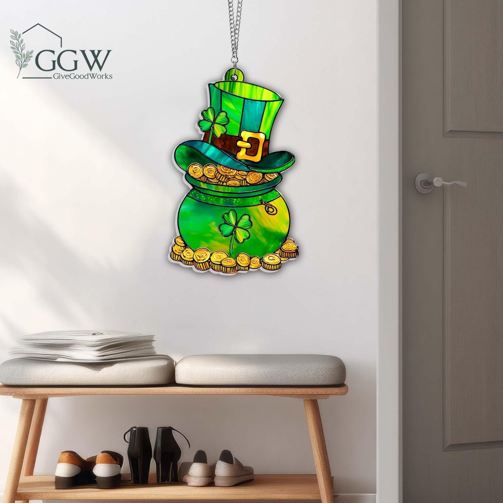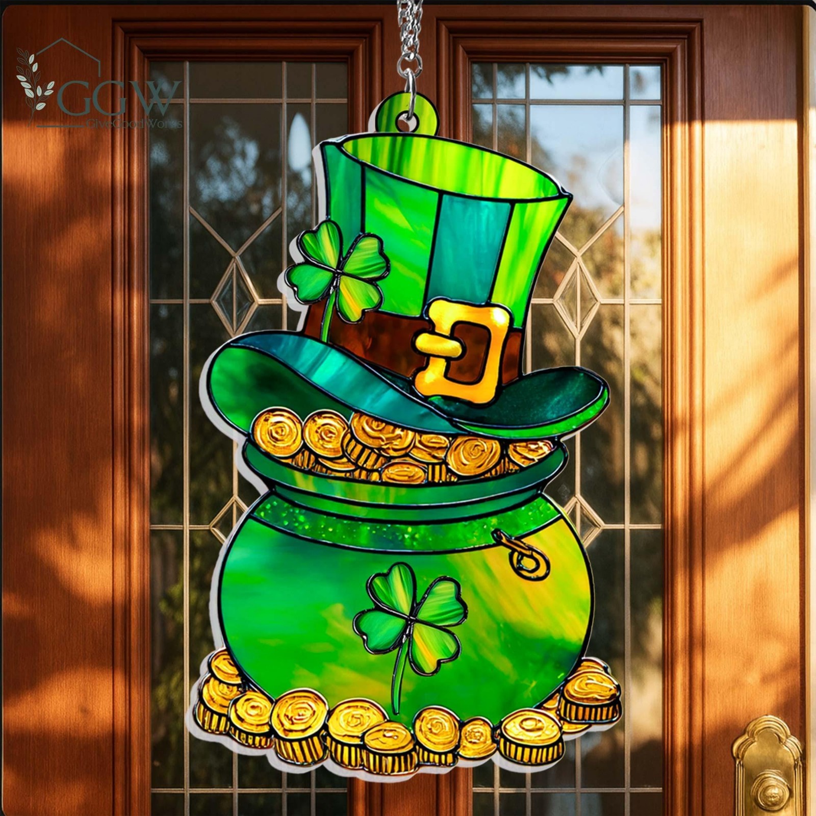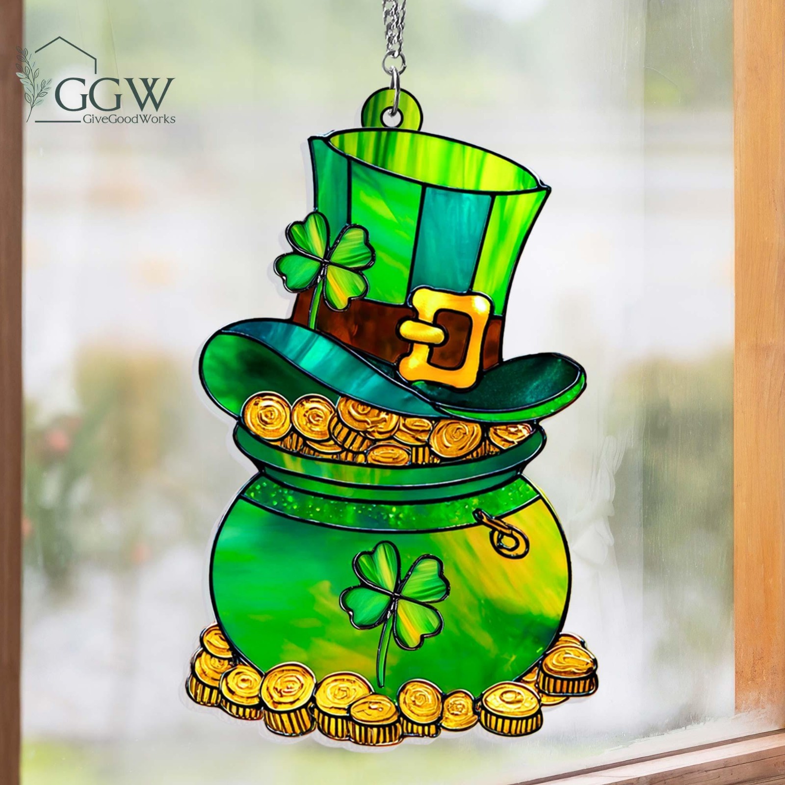 Pot of Gold St Patrick s Day Acrylic Suncatcher, Leprechaun Shamrock Irish Gift