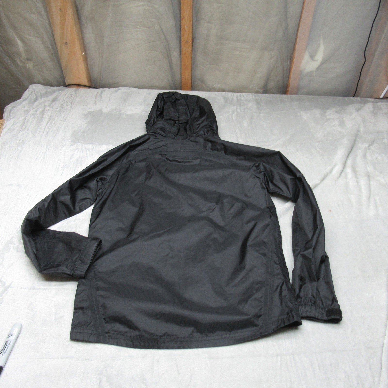 как выглядит REI Rain Jacket Boys Large Black Hooded Waterproof Full Zip Lightweight Pack фото