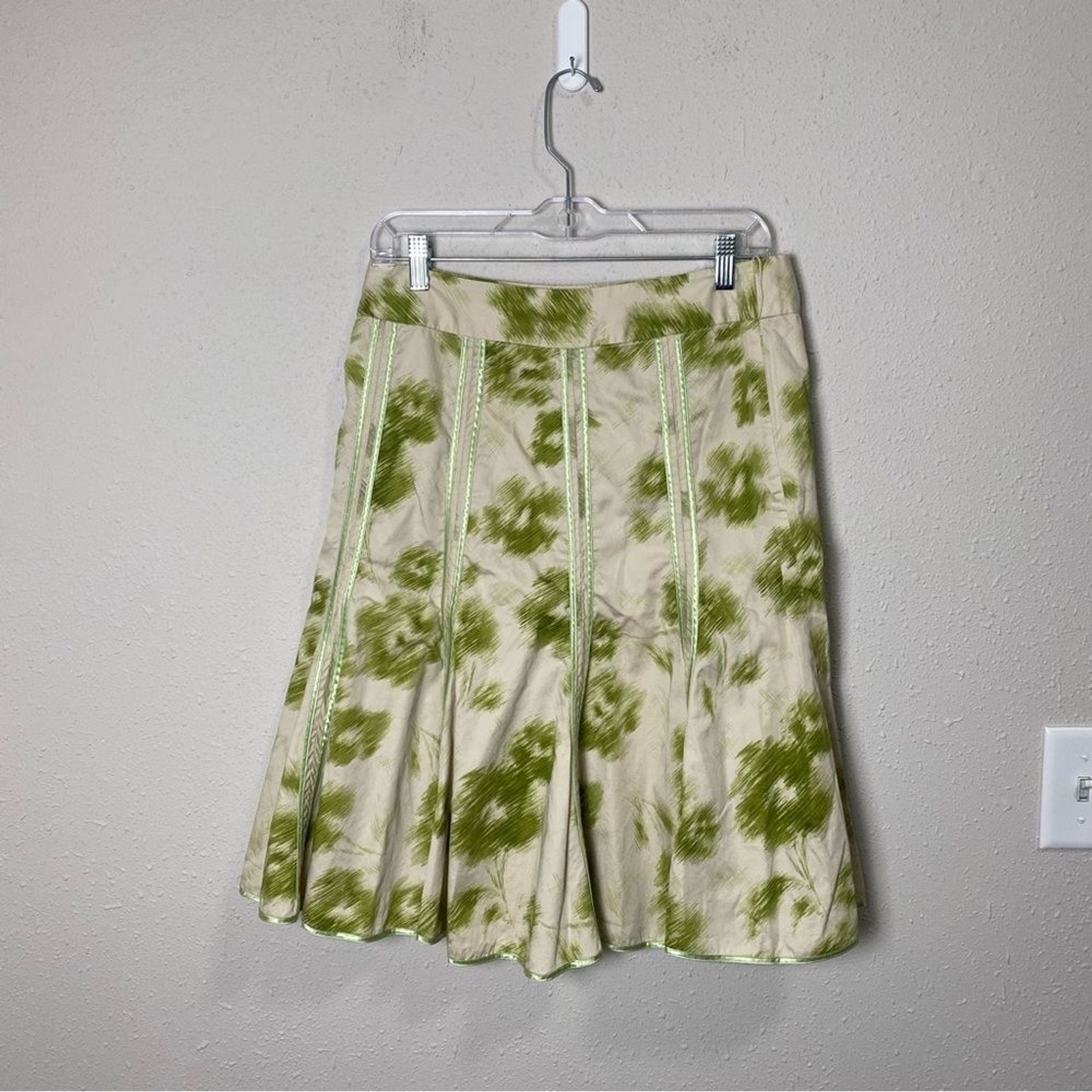 Vintage Y2K Old Navy Green Abstract A-Line Flare Low Rise Skirt Women's Size 4
