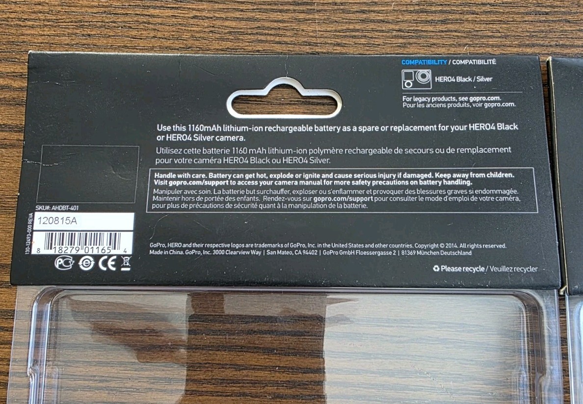 как выглядит 2 BRAND NEW GoPro Rechargeable Battery Li-Ion Hero 4 AHDBT-401 3.7V 1180mAh фото