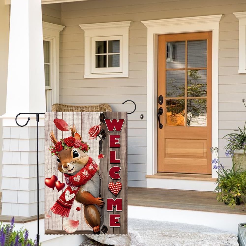 • Valentine's Day Gift Squirrel Garden Flag 12x18 Inch Yard Outdoor Art Decor