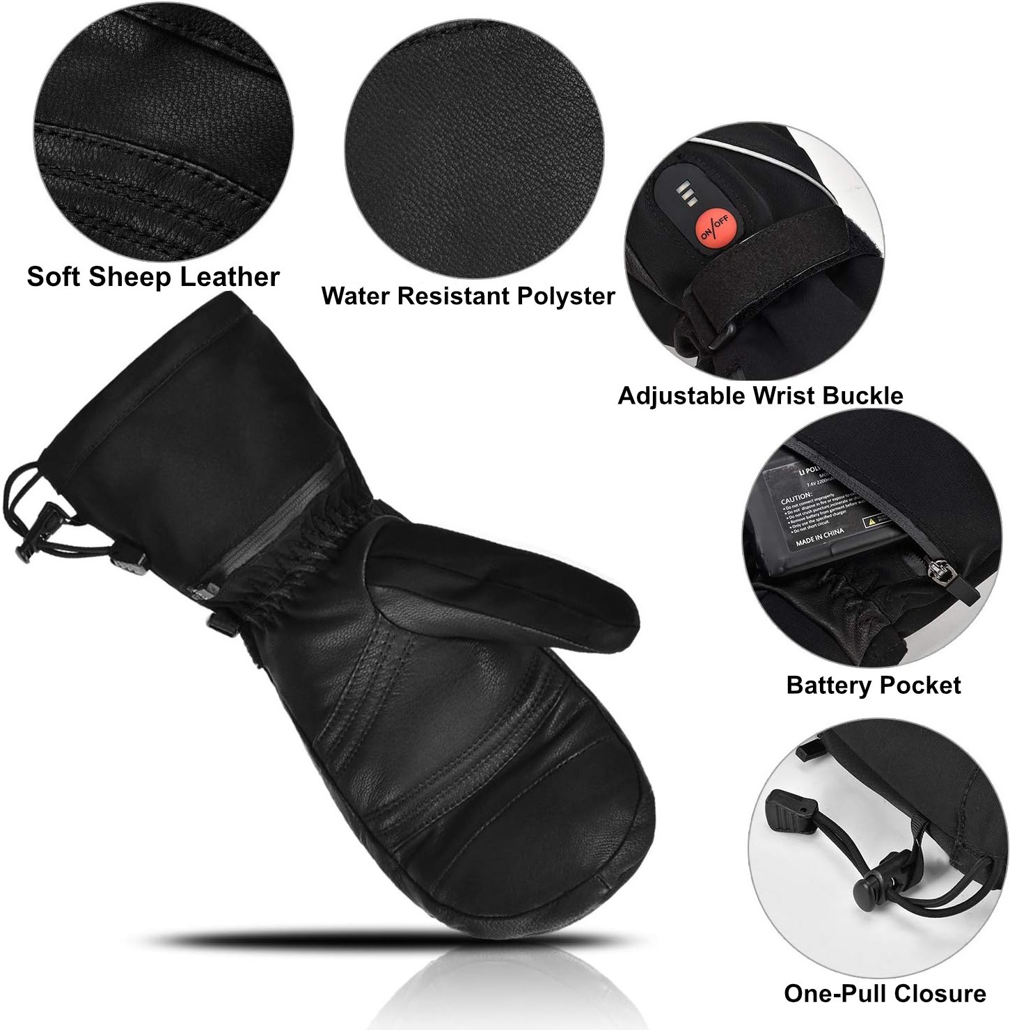 Heated Ski Hand Warm Windproof Mittens Gloves Electric Rechargeable Battery