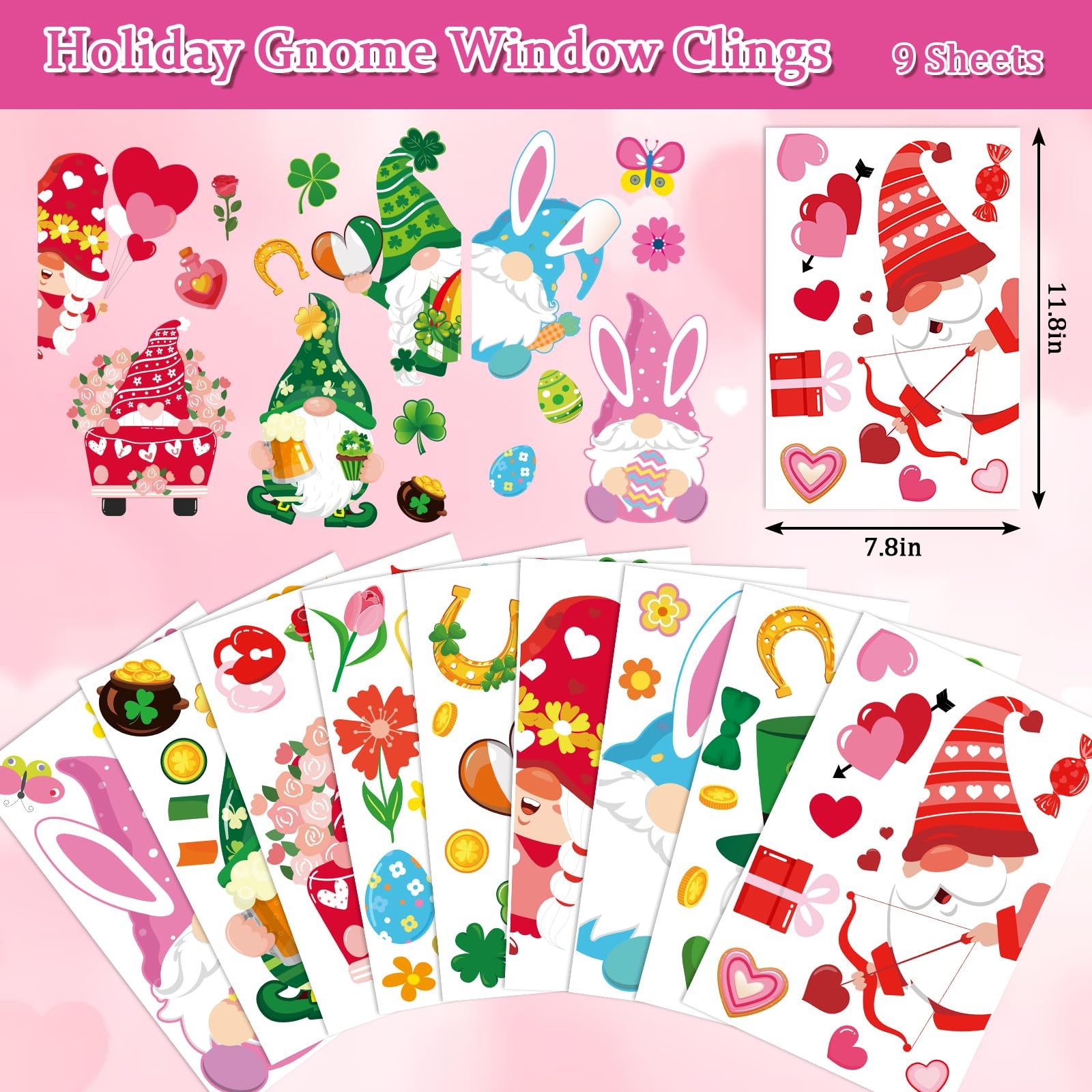 9 Sheets Valentine' s Day Gnome Window Clings St. Patrick' s Day Easter Windo