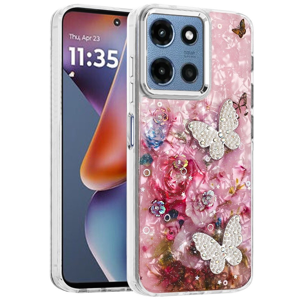 For Motorola Moto G Play 2026 Case Epoxy Glitter Butterfly Metal Buttons Cover
