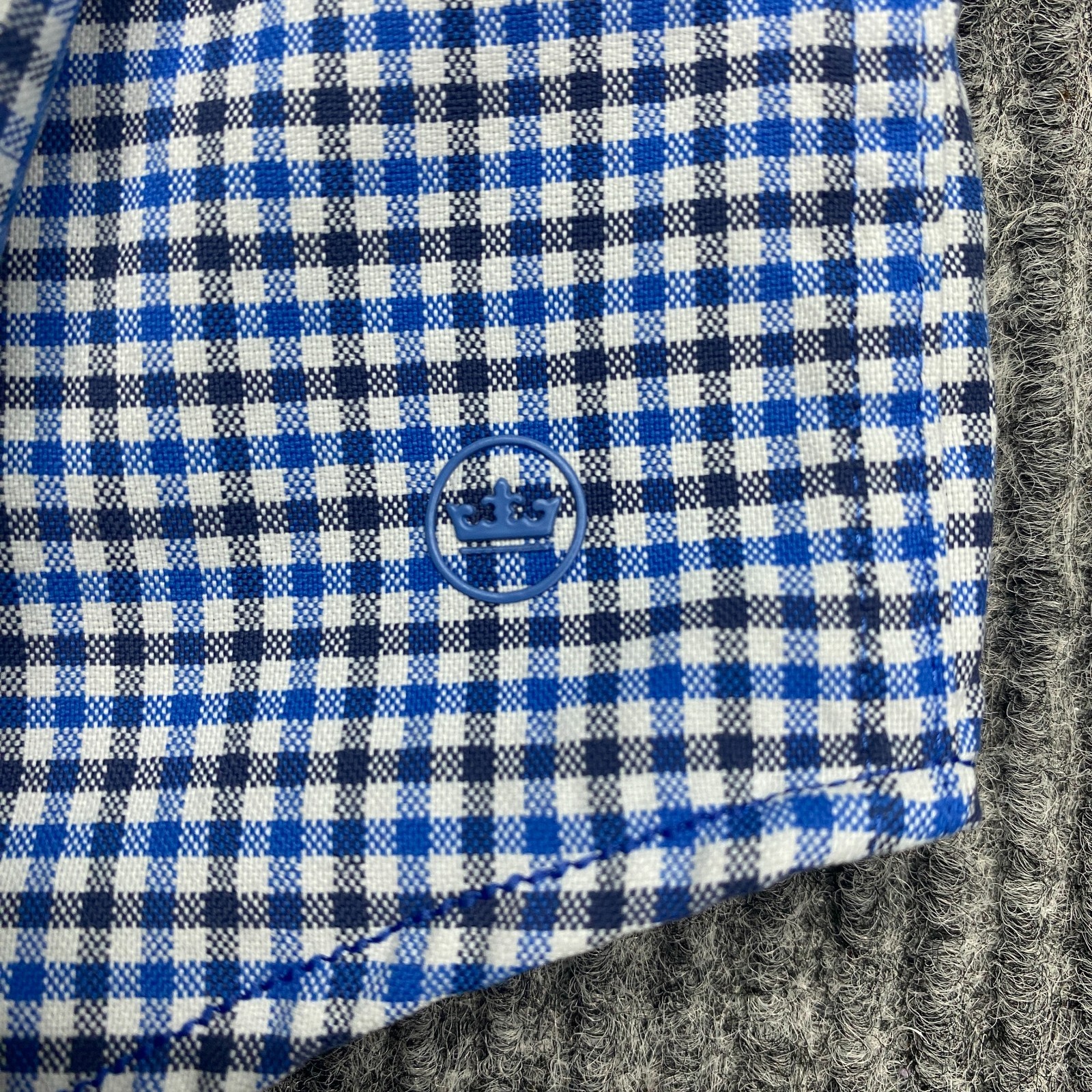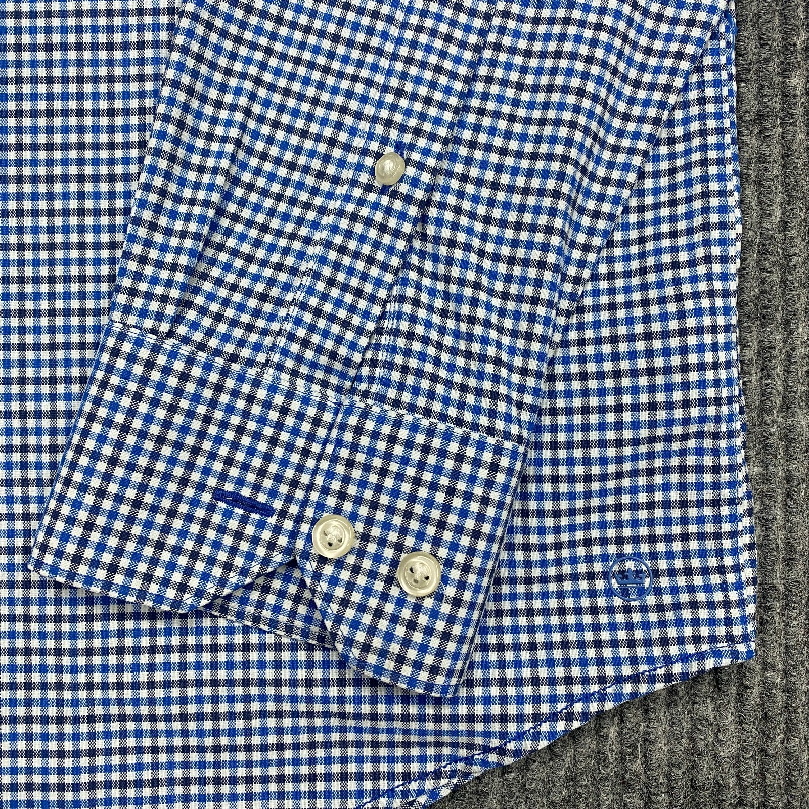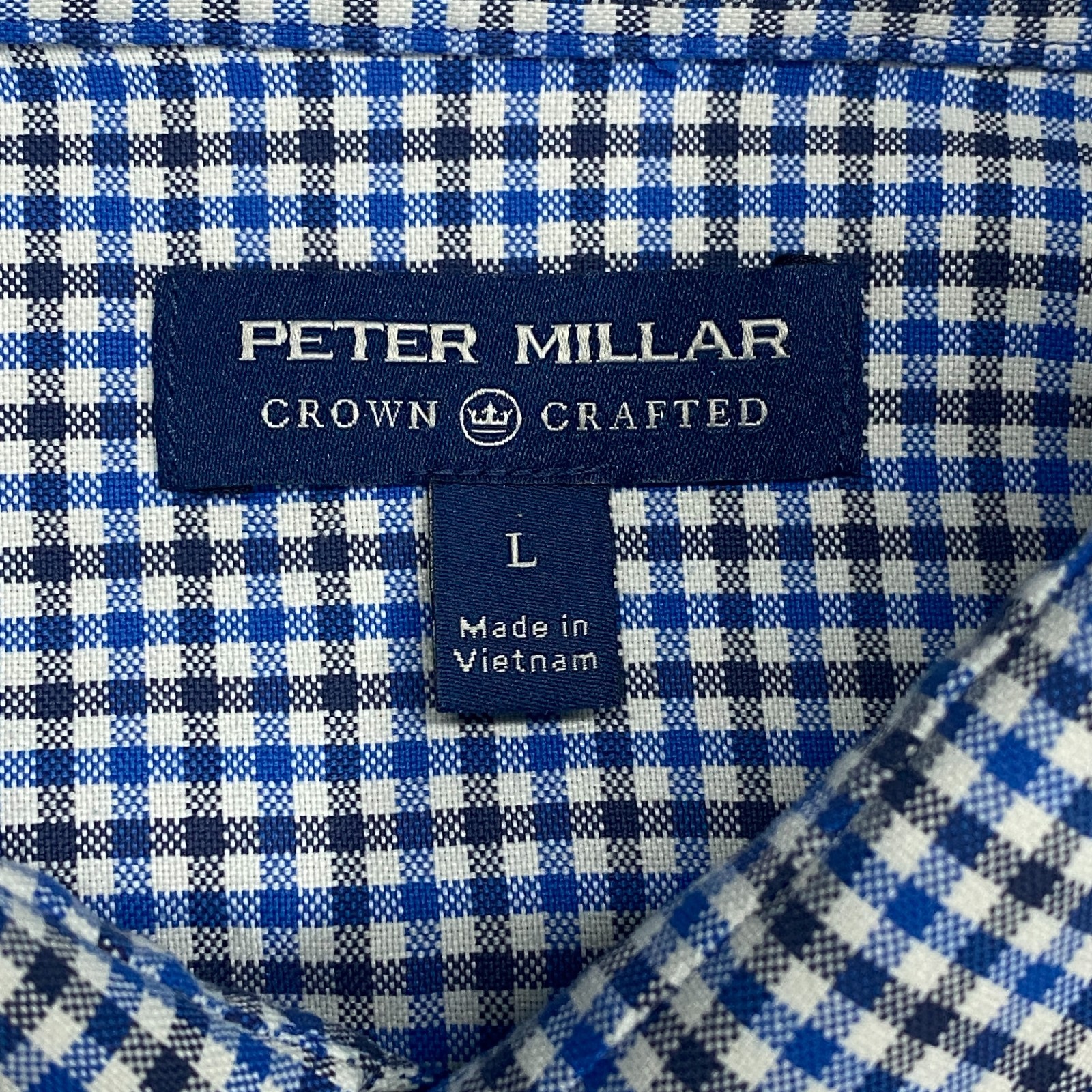как выглядит Peter Millar Crown Crafted Button Up Shirt Mens L Blue Check Plaid Long Sleeve фото