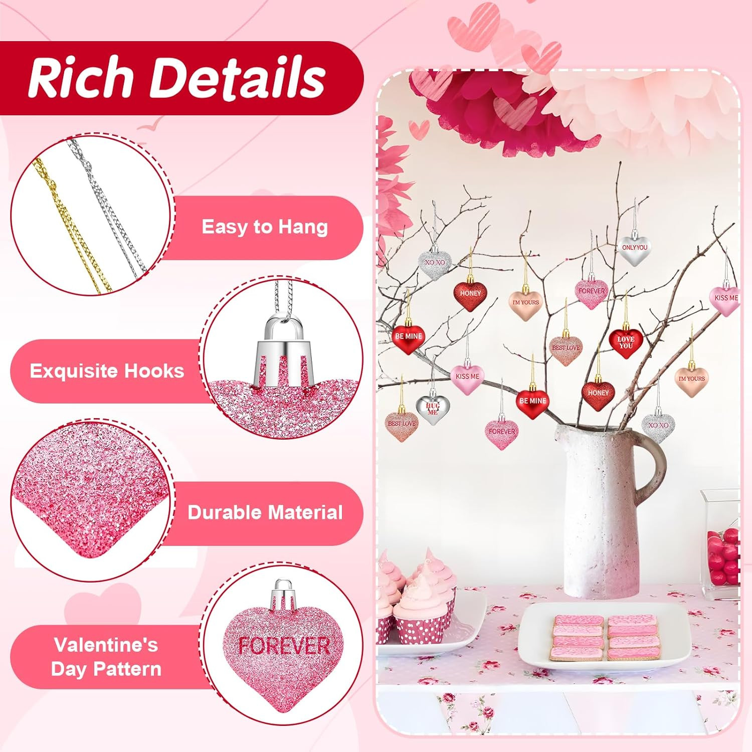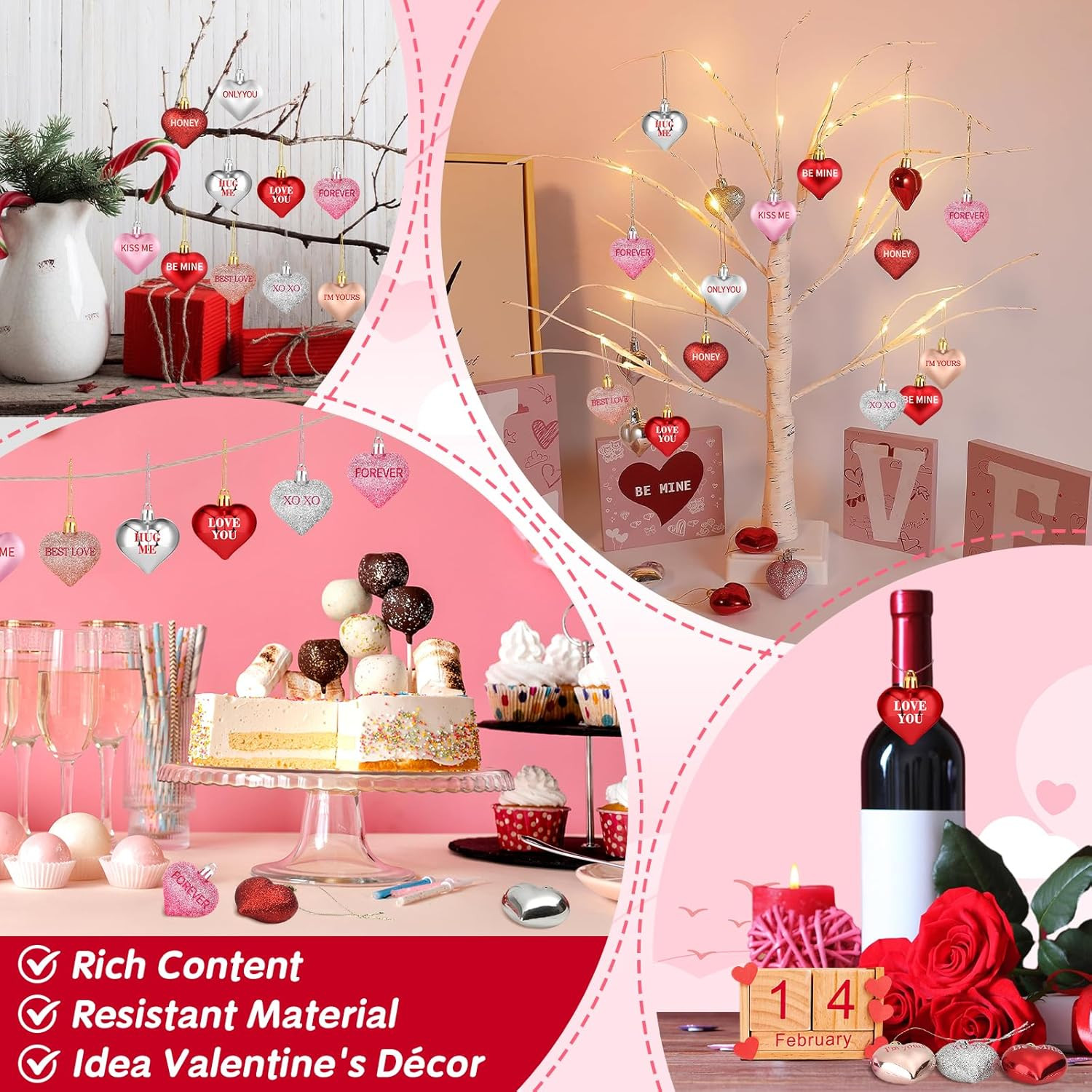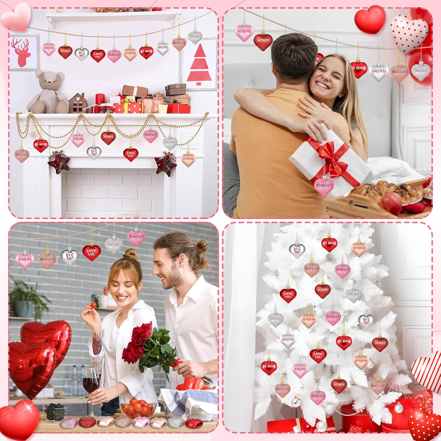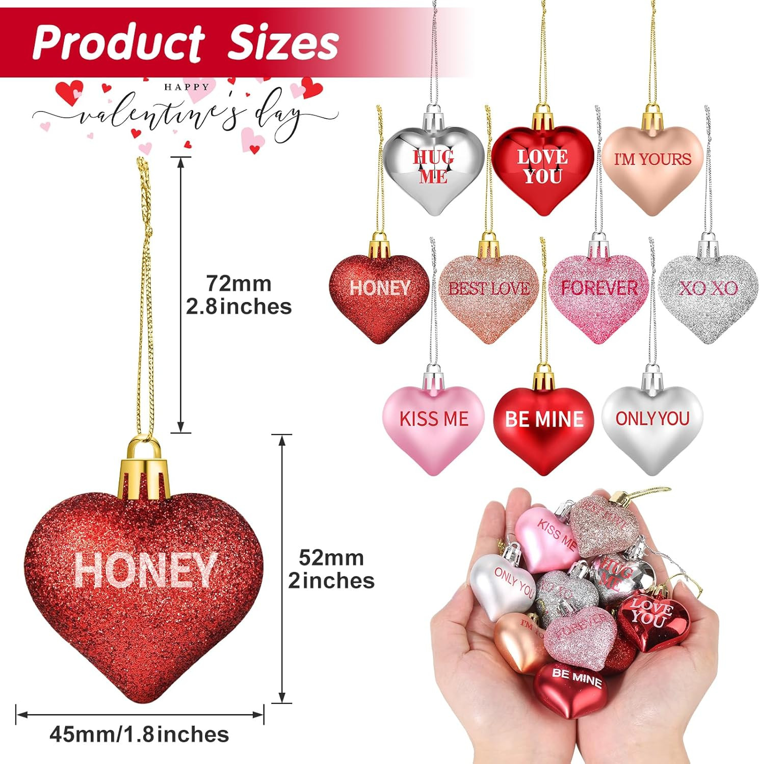 30Pcs Valentine'S Day Heart Shaped Ornaments with Sweet Love Words, 10 Styles Va
