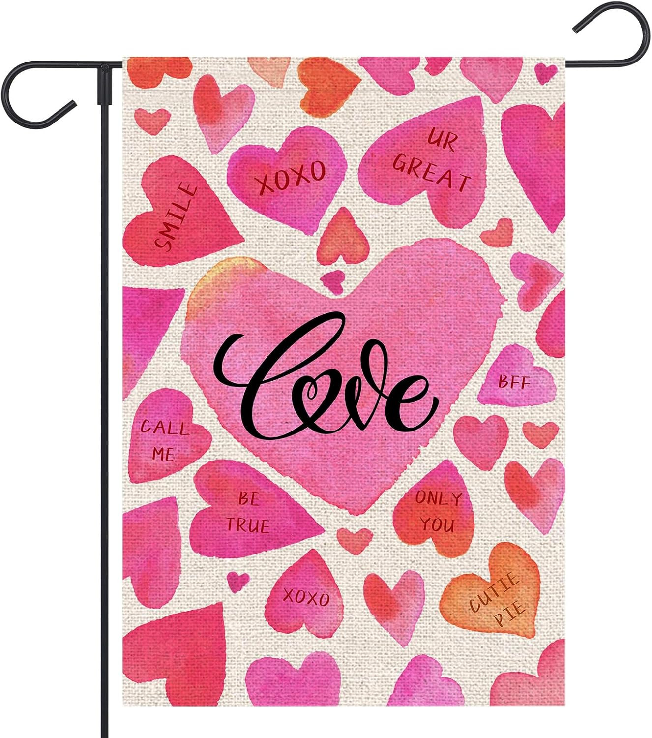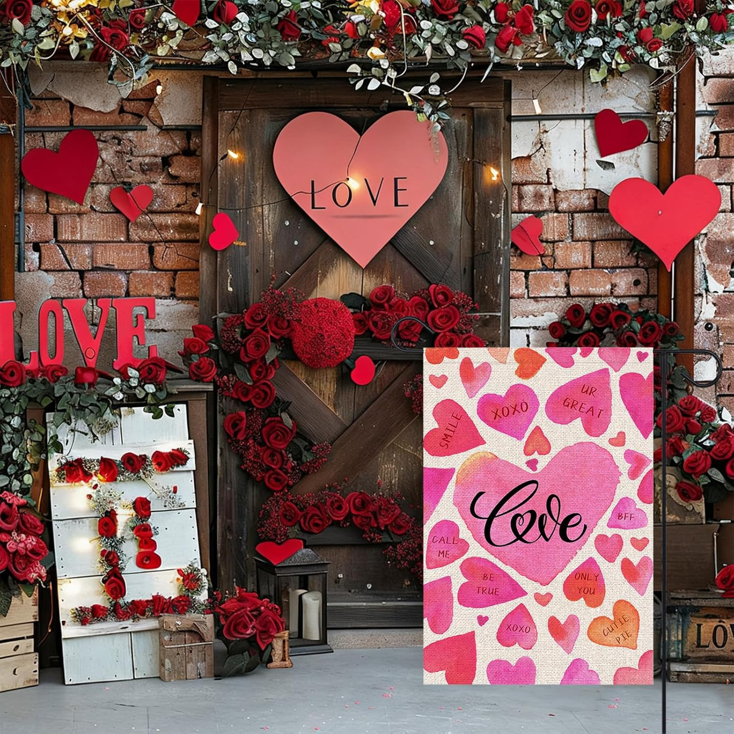 Valentines Day Garden Flag 12X18 Inch Double Sided outside Red Love Hearts XOXO