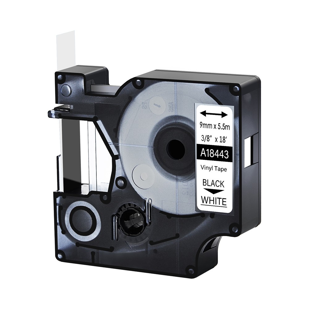 как выглядит 2PK 18443 Black on White IND Vinyl Label 3/8" for DYMO Rhino 1000 5000 5200 Tape фото