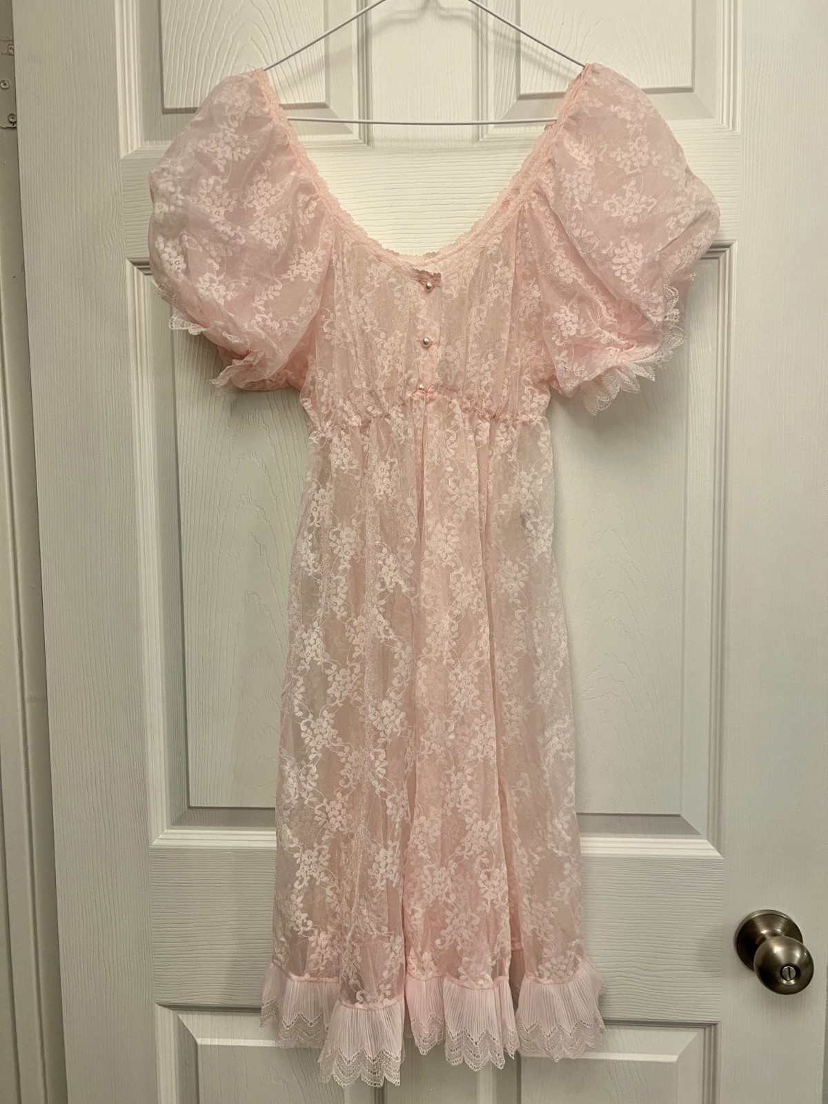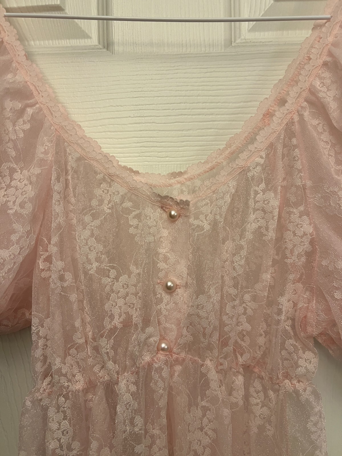 как выглядит Vintage TOSCA Peignoir Set Large Bridal Pink Lace Chiffon Lingerie Gown Robe фото