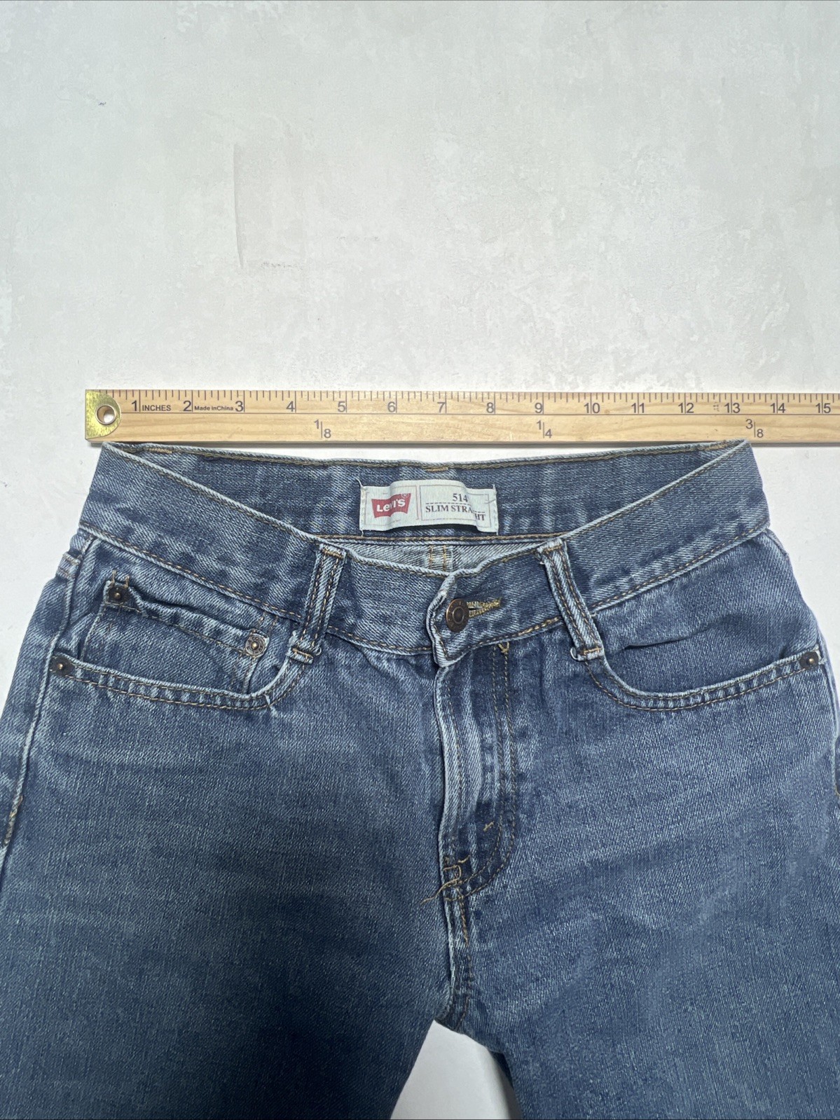 Levis 514 Jeans Boys Slim Straight Blue Denim 16 Reg 28 x 26 Md wash Distressed