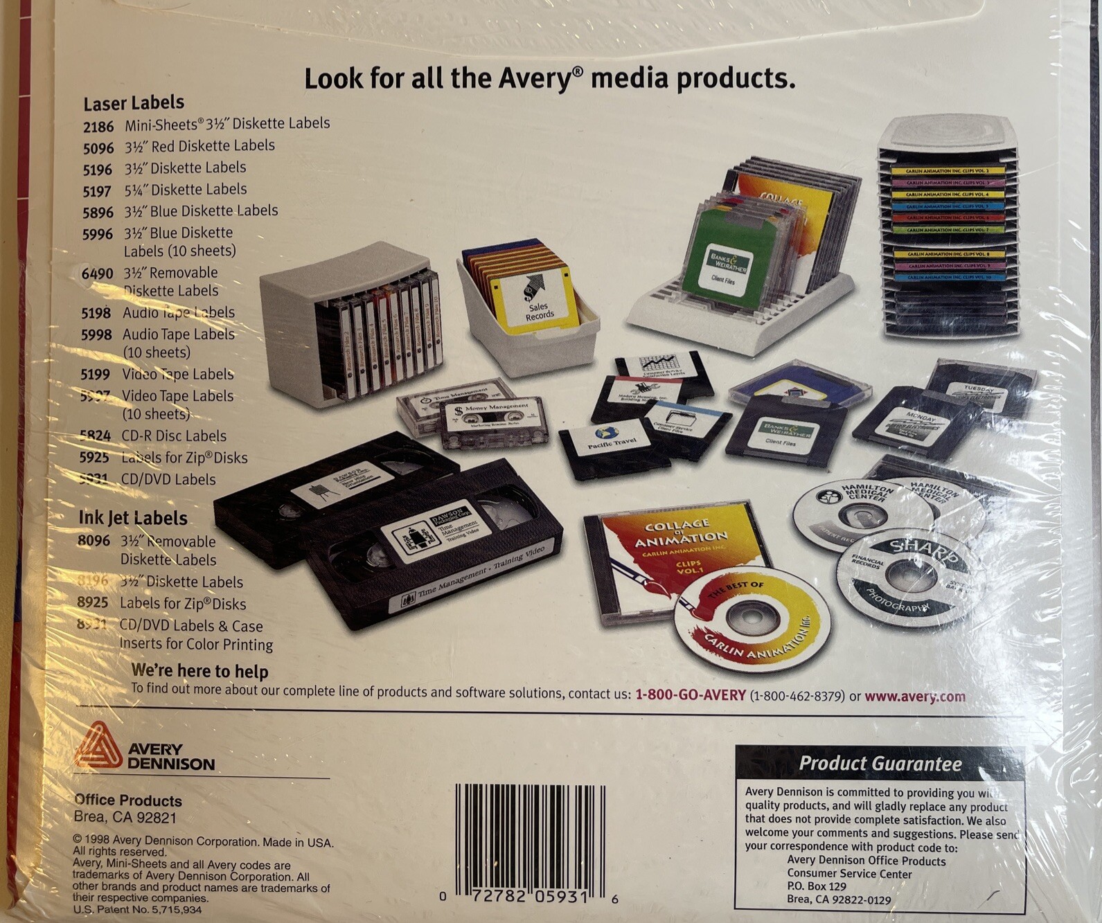 Avery Laser CD/DVD Disc Labels, 50 Disc Labels 100 Spine 5931 Brand New Sealed
