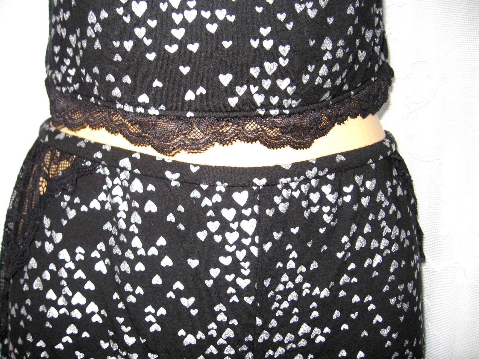MEDIUM VICTORIA'S SECRET BLACK/SILVER HEARTS LACE TRIM 2 PIECE PAJAMA SET