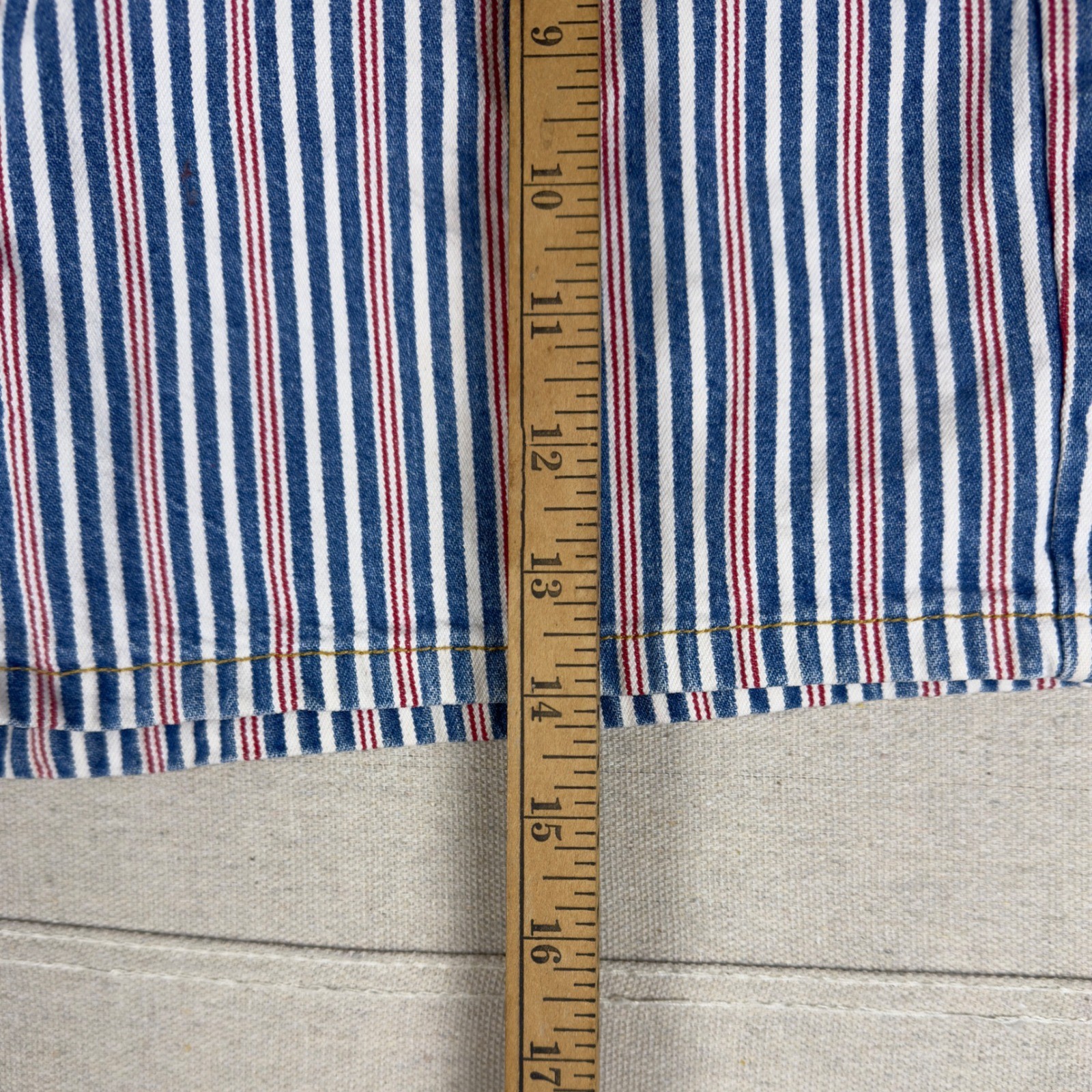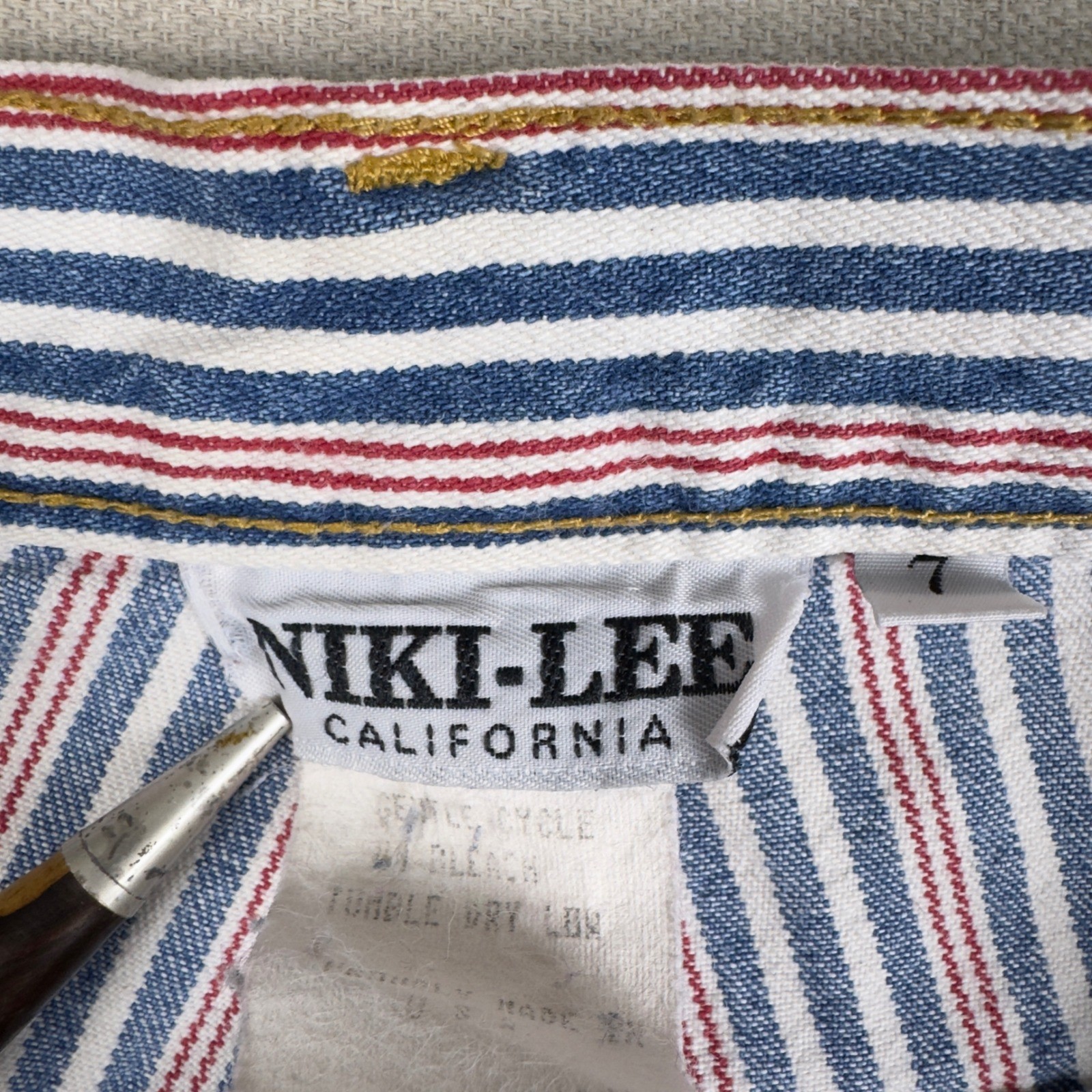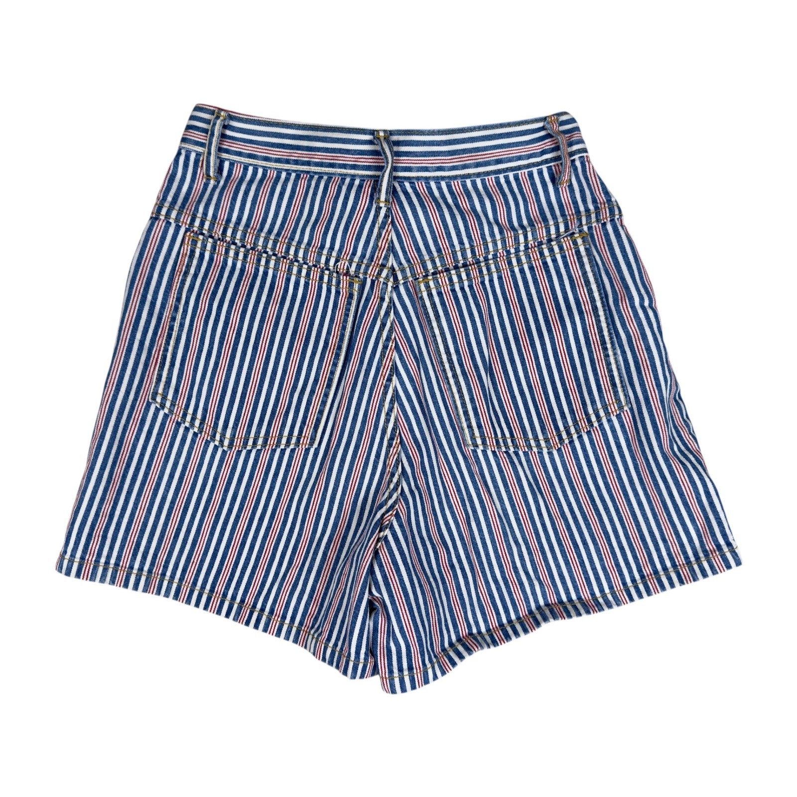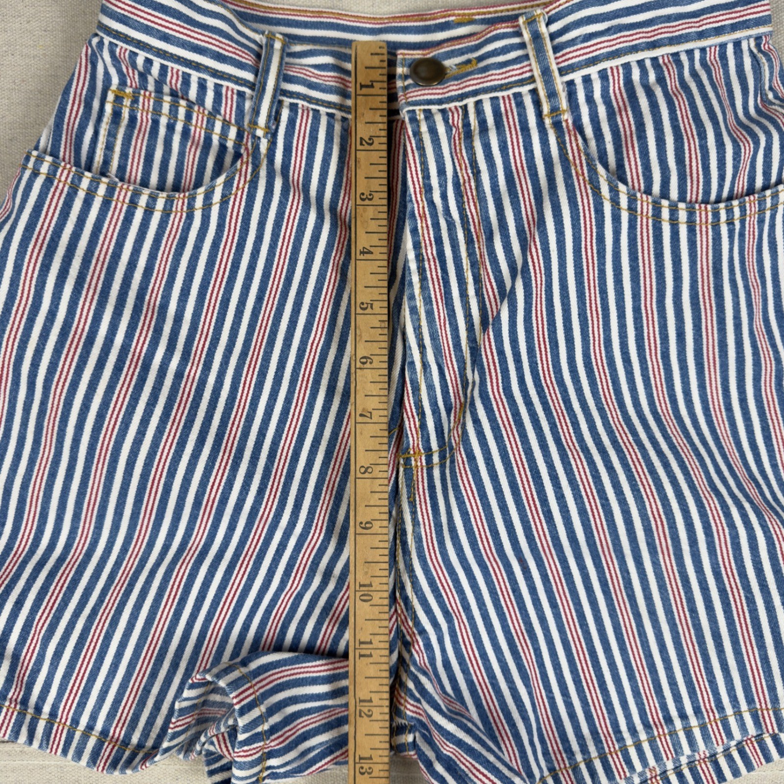 как выглядит VTG Nikki Lee California Womens High Rise Striped Denim Shorts Size 7 1990s фото