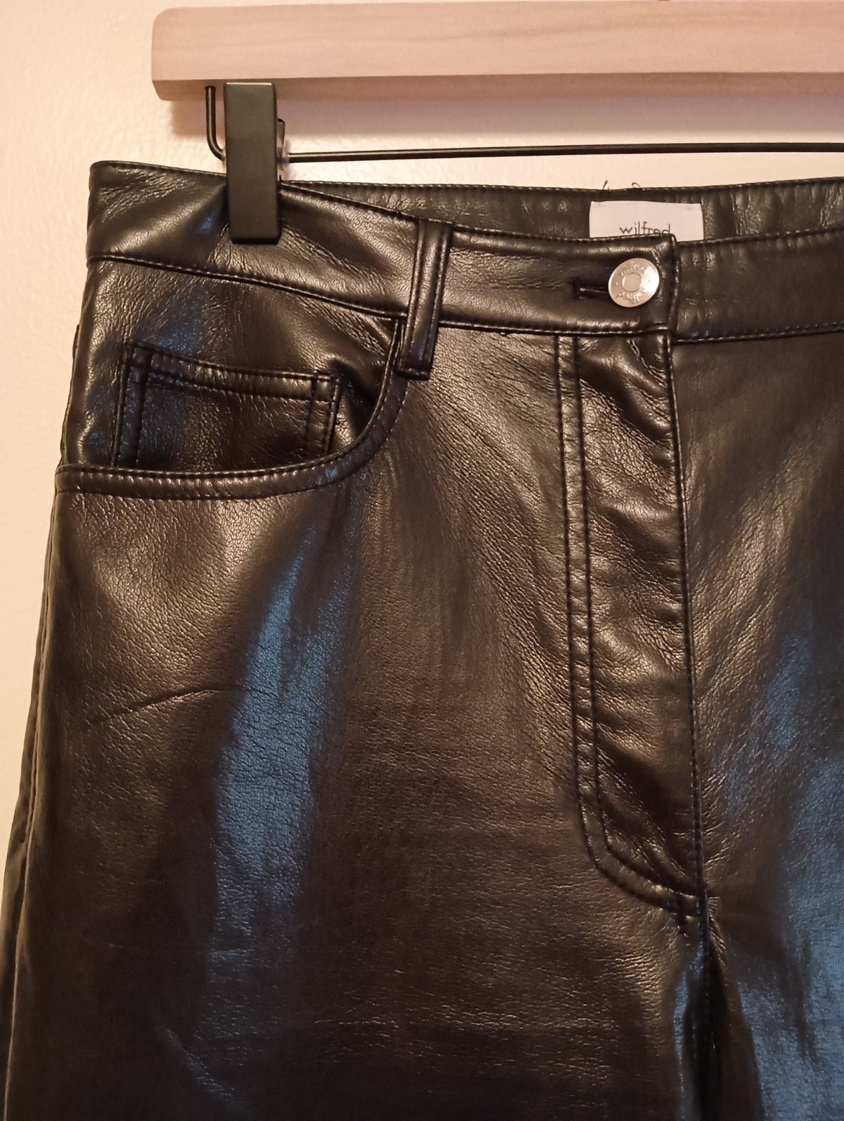как выглядит Wilfred Aritzia The Melina Vegan Leather Pants Black Size 8 High Rise Straight фото